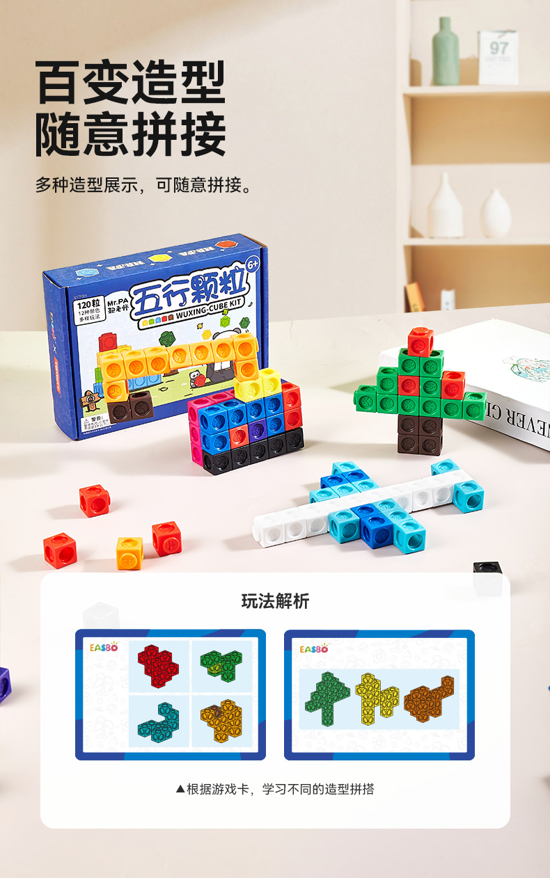 EASBO Five Elements Granules 어린이 집중력 장난감 수학 논리적 공간적 사고 조립 교육용 빌딩 블록 접합스토어 가기