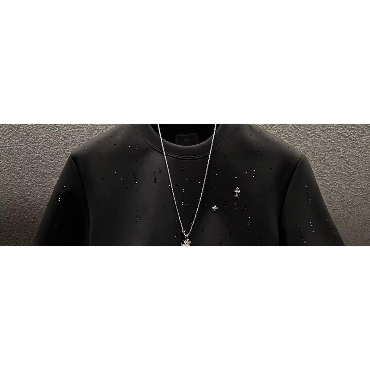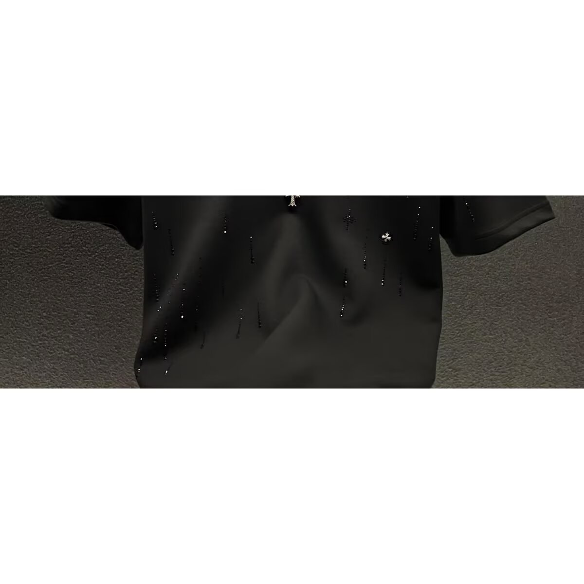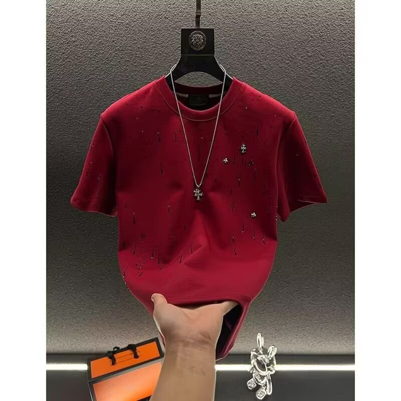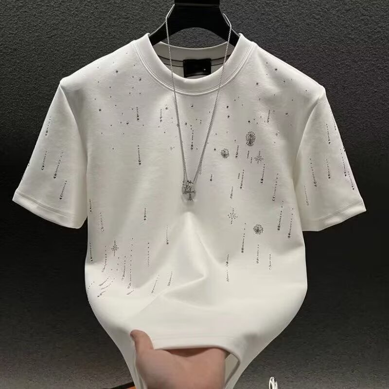 2025 년 여름 반팔 남성 최고 중공업 라이트 럭셔리 높은 고정 유성 풀 다이아몬드 티셔츠 남자 라운드 넥 반소매 티셔츠