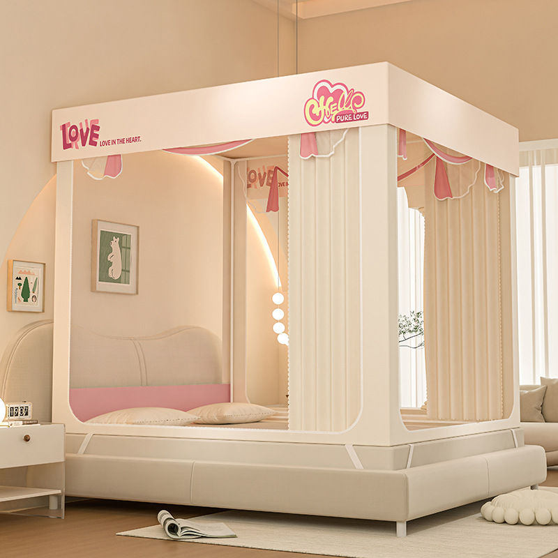 클래스 A 모성 및 유아 만화 컬러 매칭 음영 침대 모기장 암호화 그물 원사 u 자형 정사각형 상단 3 도어 완전히 밀폐 된 모기장스토어 가기