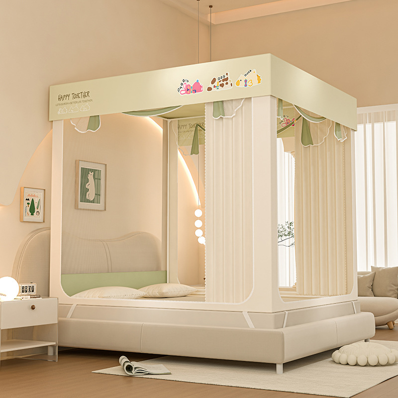 클래스 A 모성 및 유아 만화 컬러 매칭 음영 침대 모기장 암호화 그물 원사 u 자형 정사각형 상단 3 도어 완전히 밀폐 된 모기장