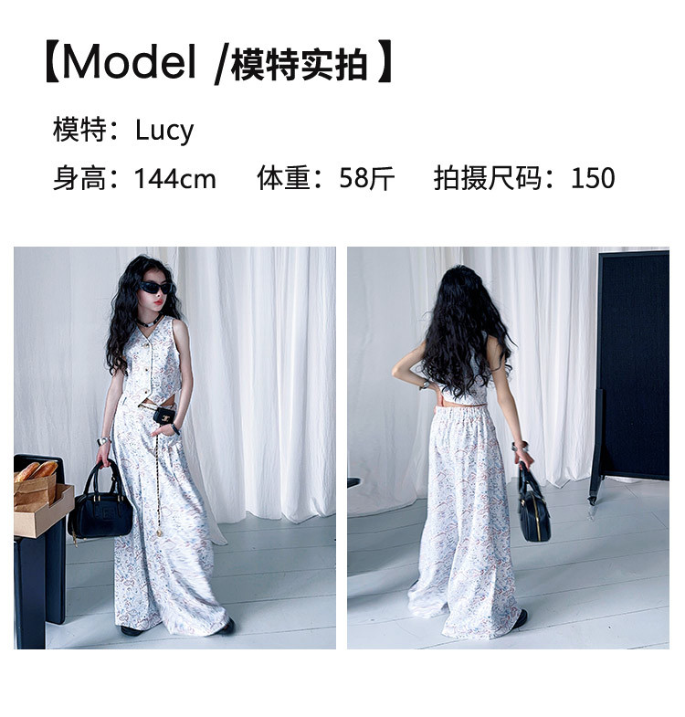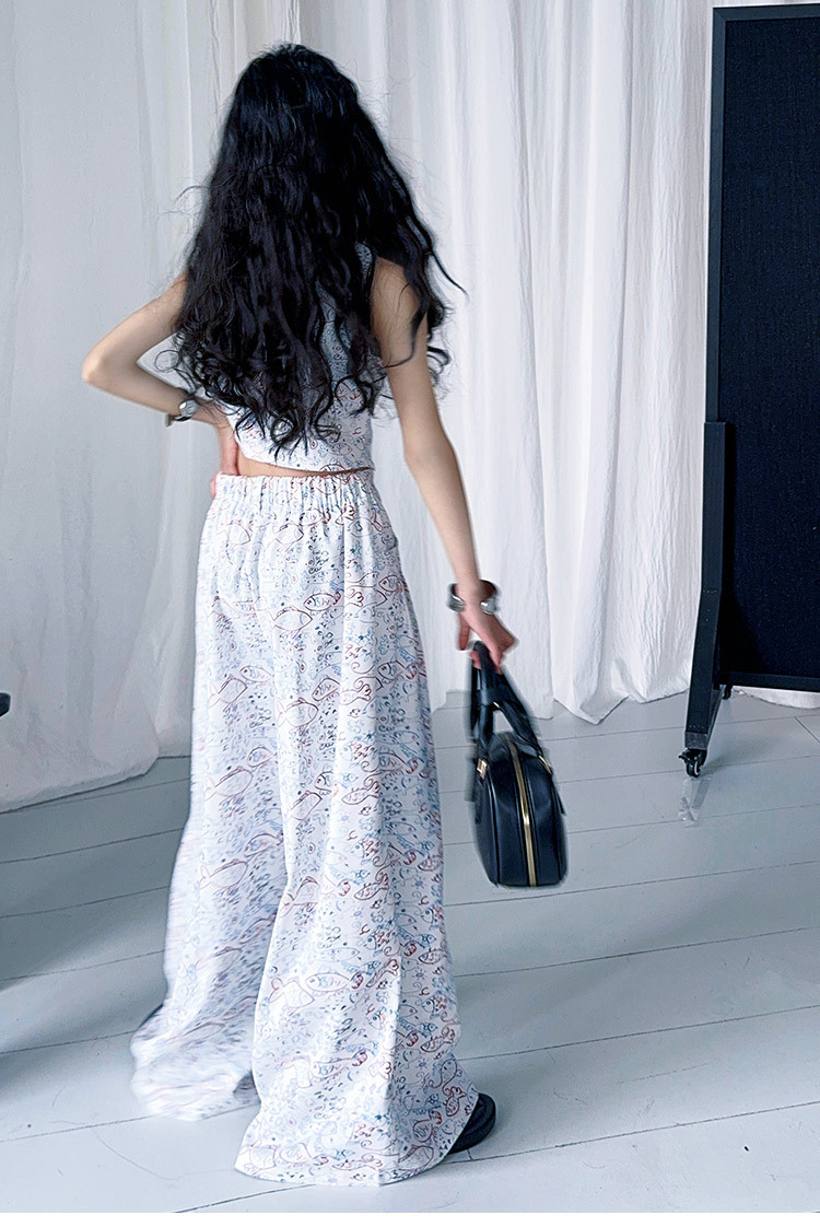 소녀 넓은 다리 바지 세트 봄과 여름 2025 새로운 한국 스타일 외국 스타일 작은 물고기 낙서 조끼 캐주얼 바지스토어 가기