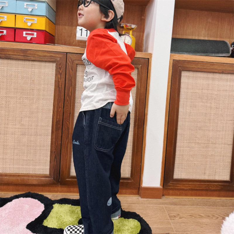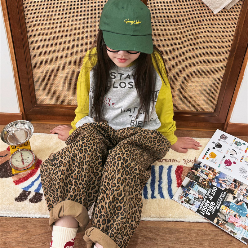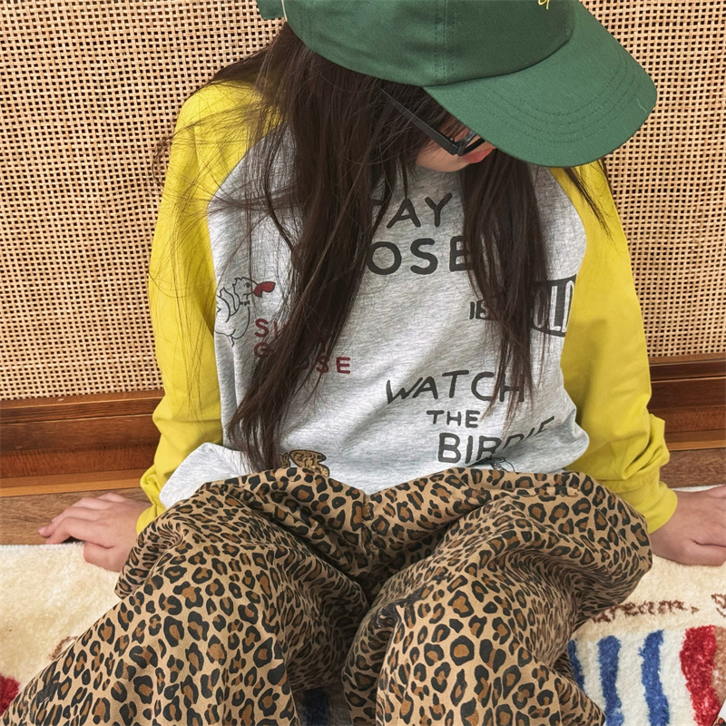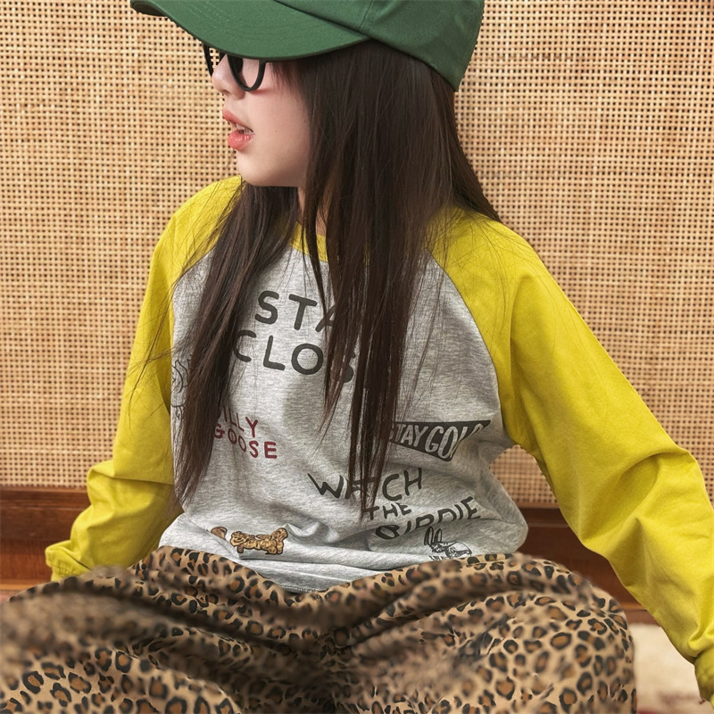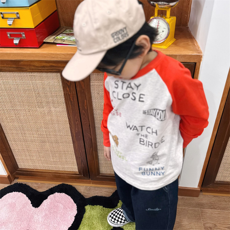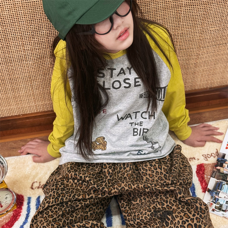 2025 봄 여름 새로운 어린이 동물 바닥 셔츠 소년과 소녀 스플 라이스 낙서 인쇄 라글란 슬리브 티셔츠 재고 있음스토어 가기