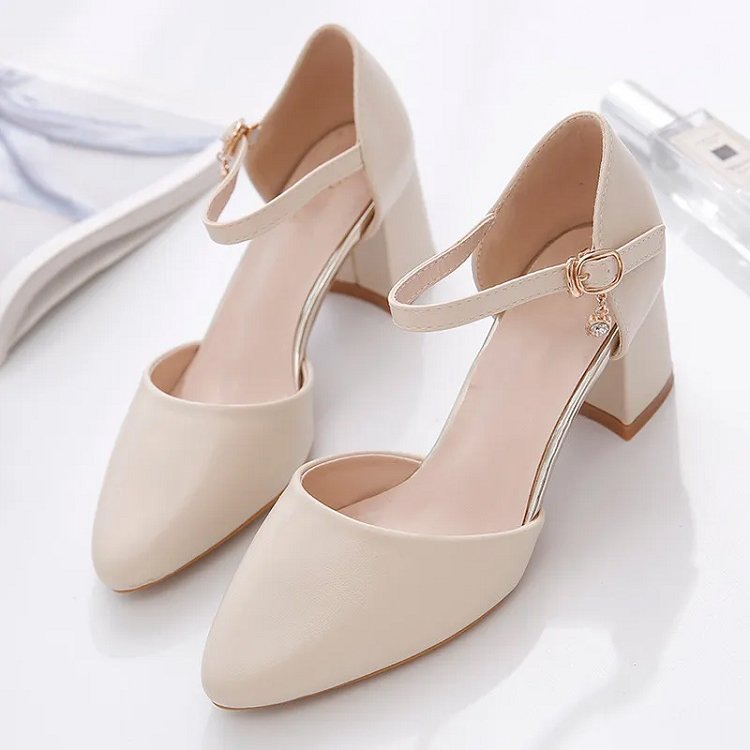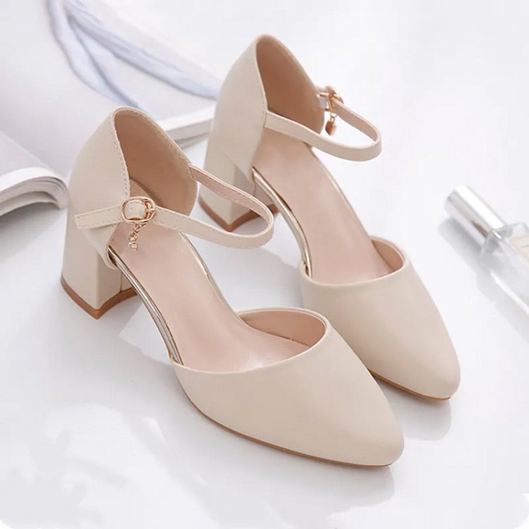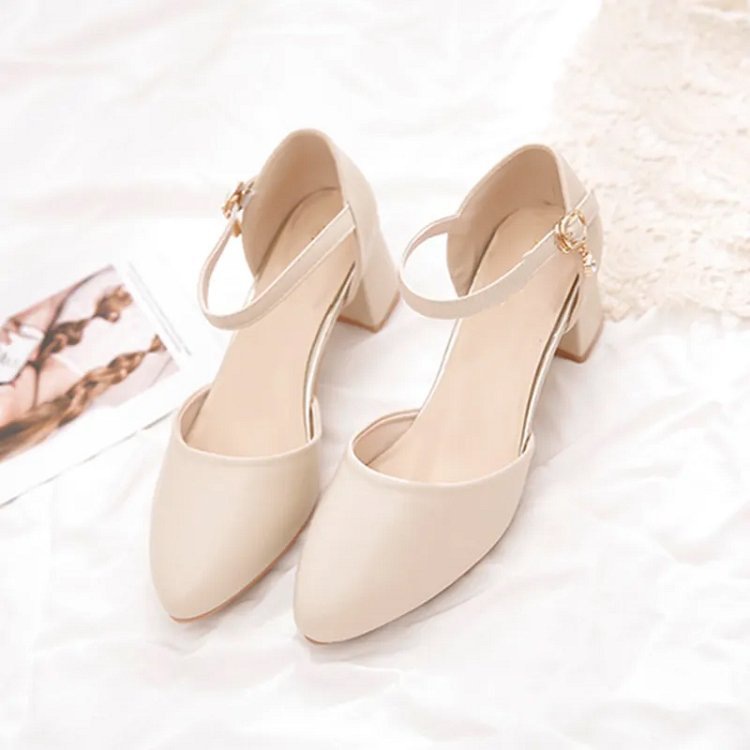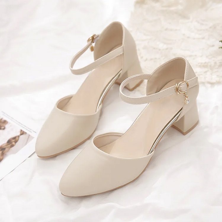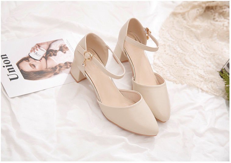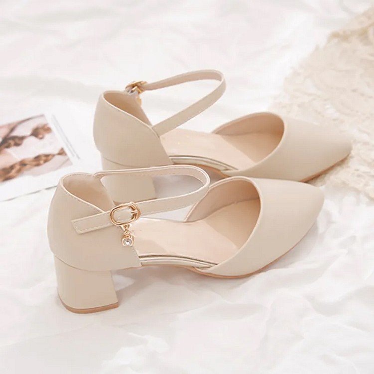 Baotou 샌들 여자 할로우 올 매치 싱글 레이어 슈즈 2025 여름 새로운 페어리 스타일 미드 힐 하이힐 버클스토어 가기