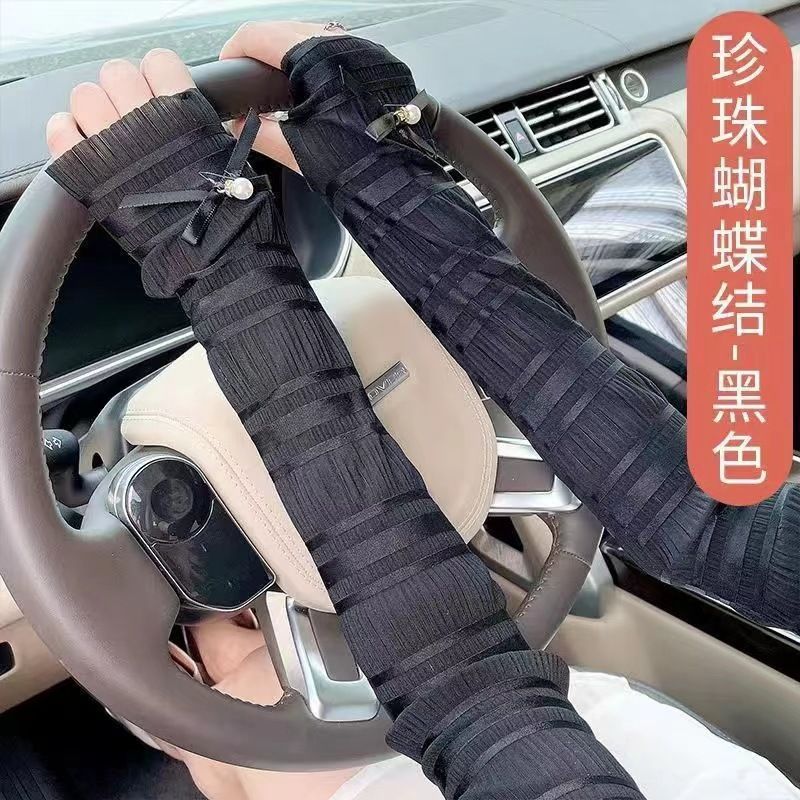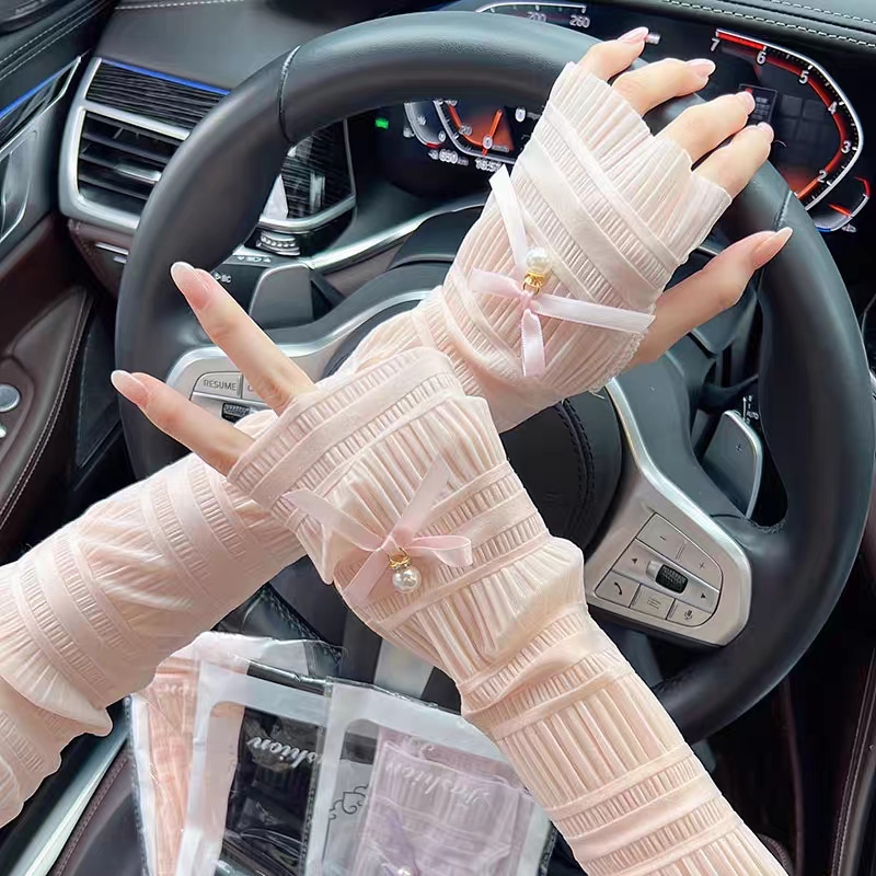 햇빛 운전 태양 보호 장갑 여성의 긴 레이스 소매 얇은 여름 안티-UV 얼음 소매 아이스 실크 팔 소매