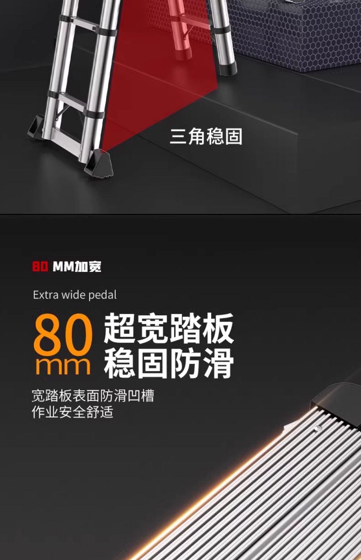 M & 텔레스코픽 사다리 리프팅 엔지니어링 사다리 알루미늄 합금 휴대용 가정용 헤링본 사다리 다기능 스트레이트 사다리 스테인레스 스틸 접힘