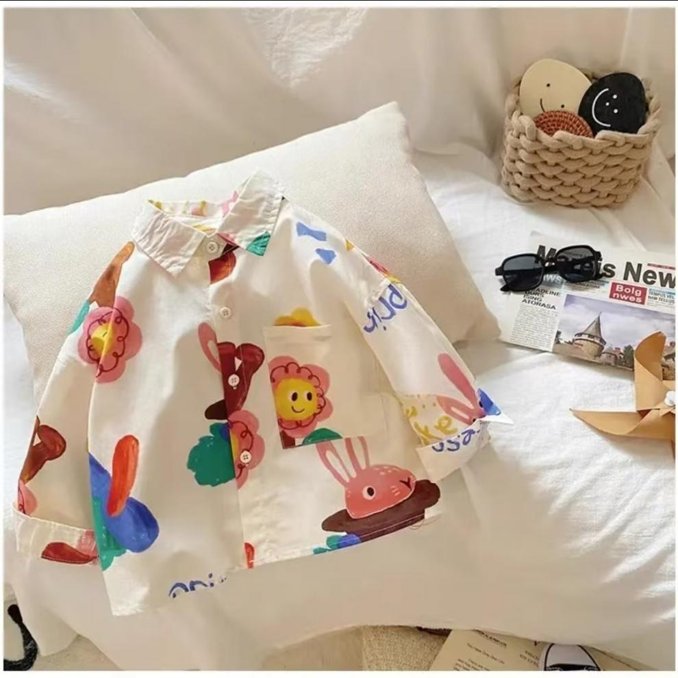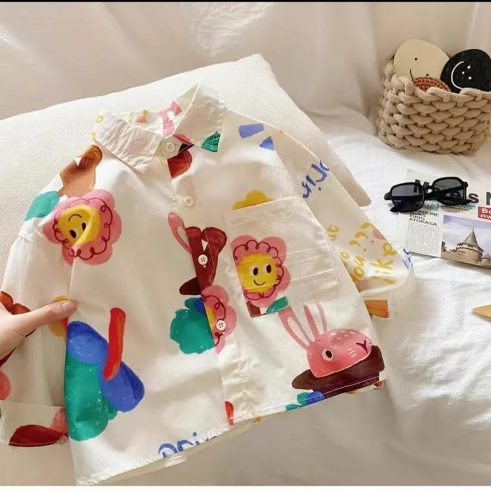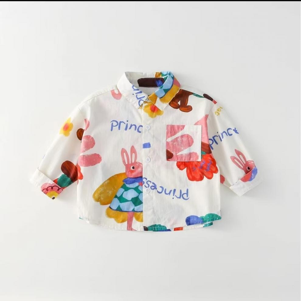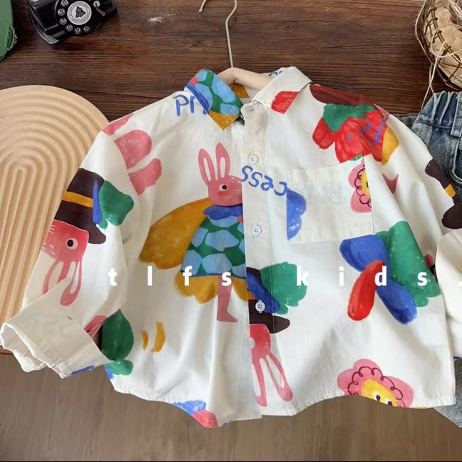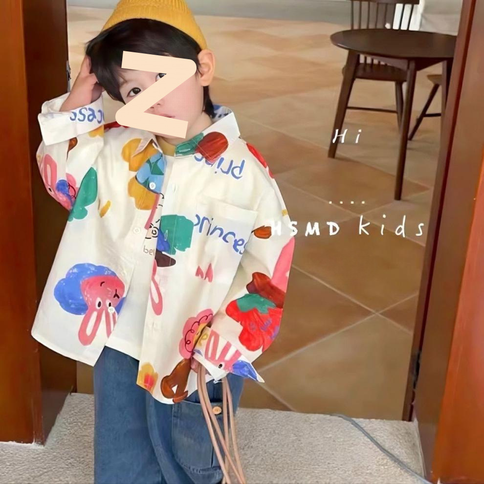 어린이 만화 셔츠 소년 봄과 가을 2025 봄 새로운 어린이 인쇄 외국 스타일 귀여운 최고 조수 도매