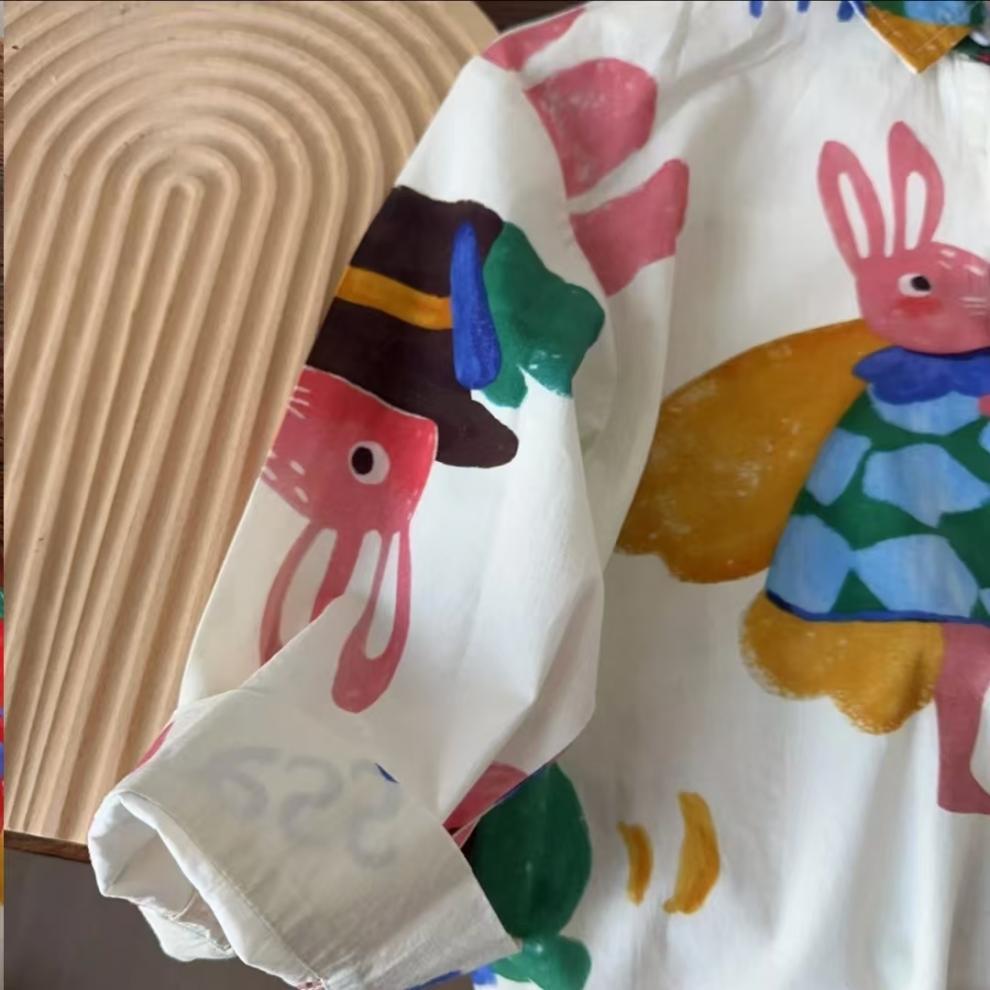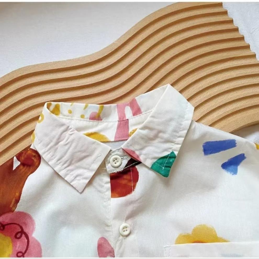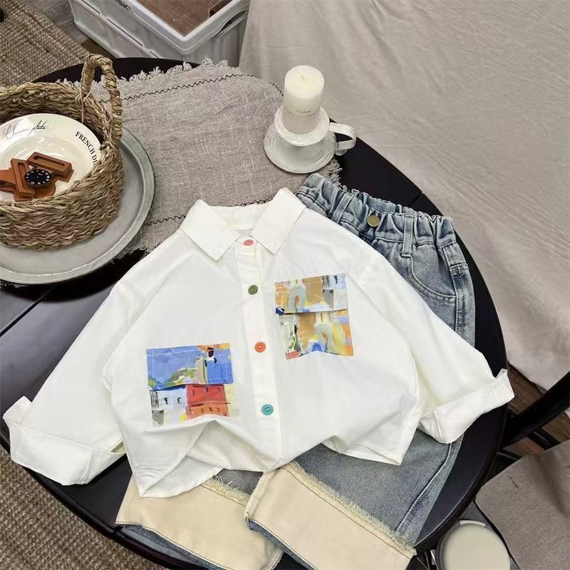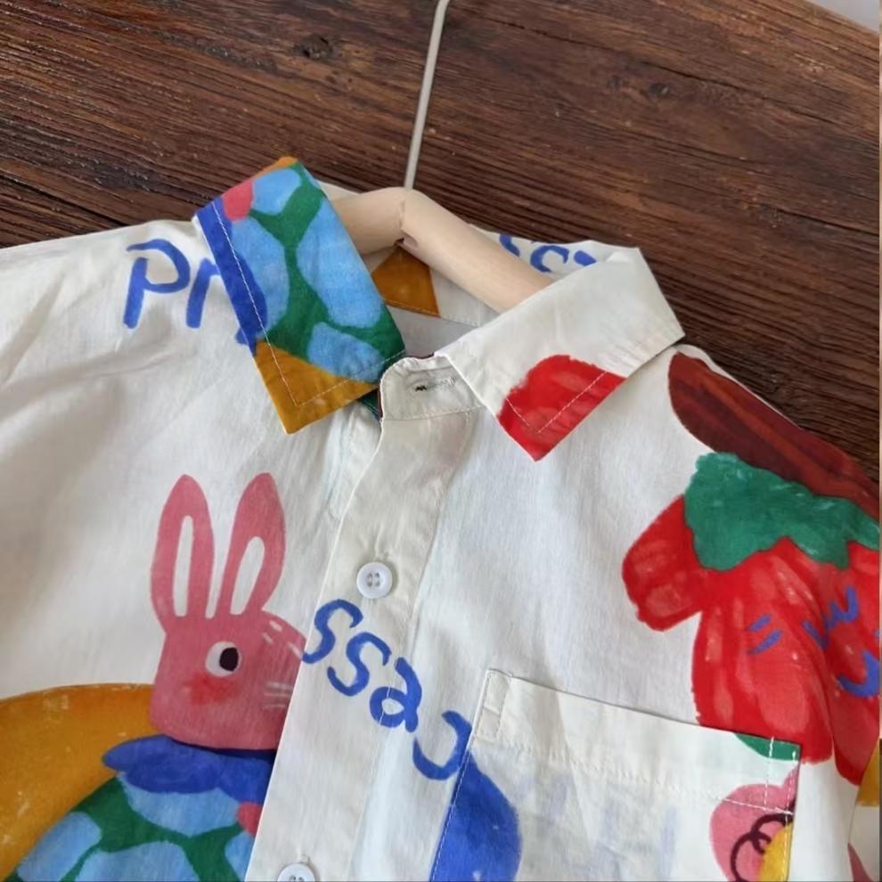 어린이 만화 셔츠 소년 봄과 가을 2025 봄 새로운 어린이 인쇄 외국 스타일 귀여운 최고 조수 도매