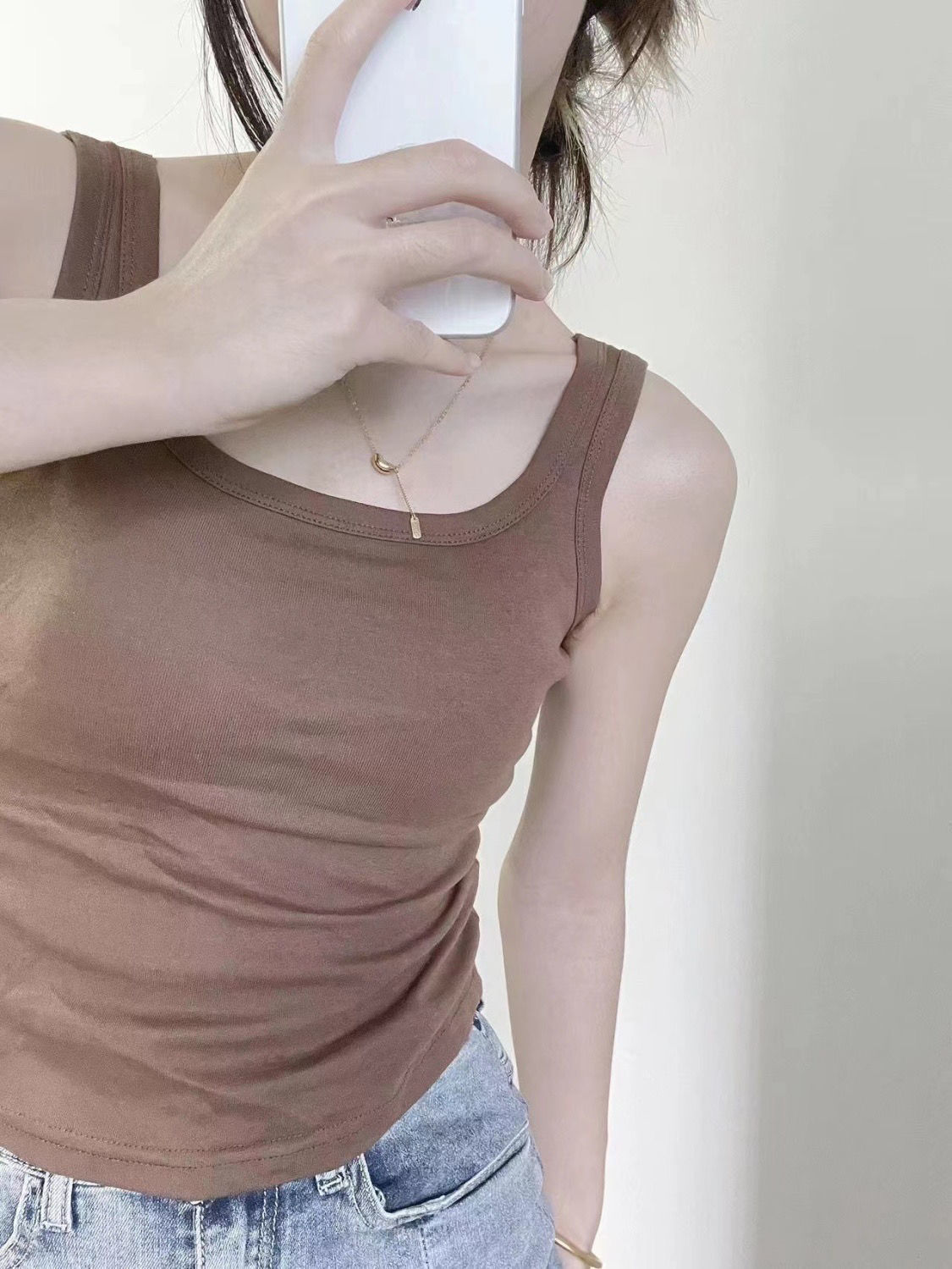 여성용 반지없는 가슴 패드 중간 길이의 코튼 카미 솔 여성용 내복 외부 착용 슬림 핏 아름다운 백베이스 스트랩리스 탑스토어 가기