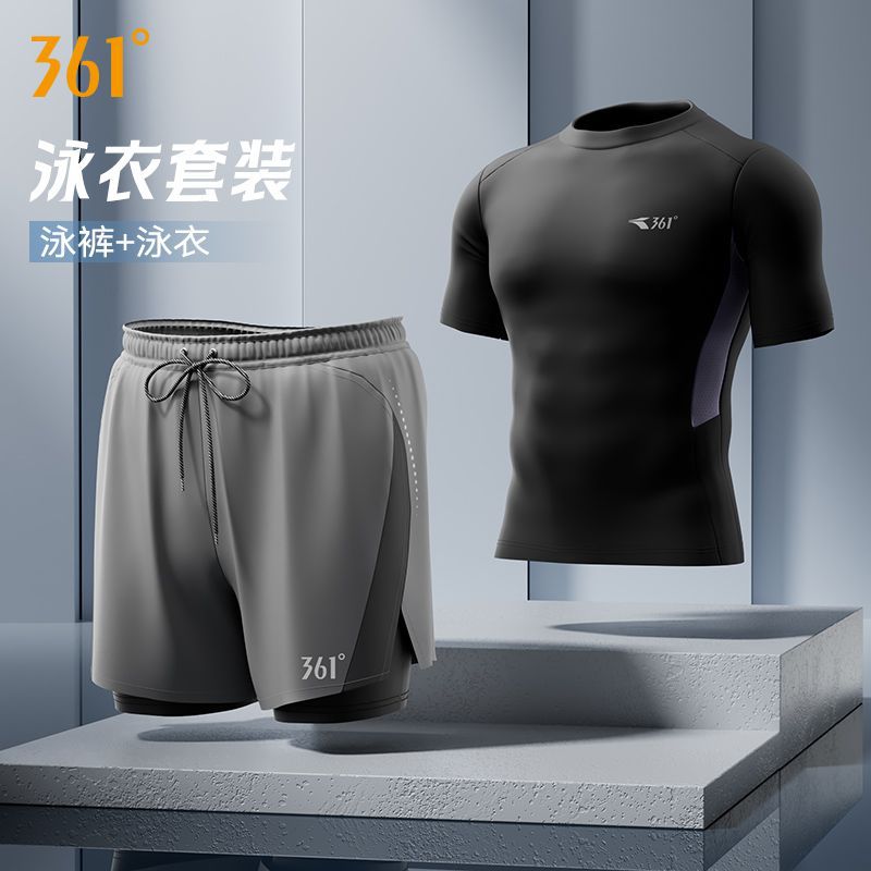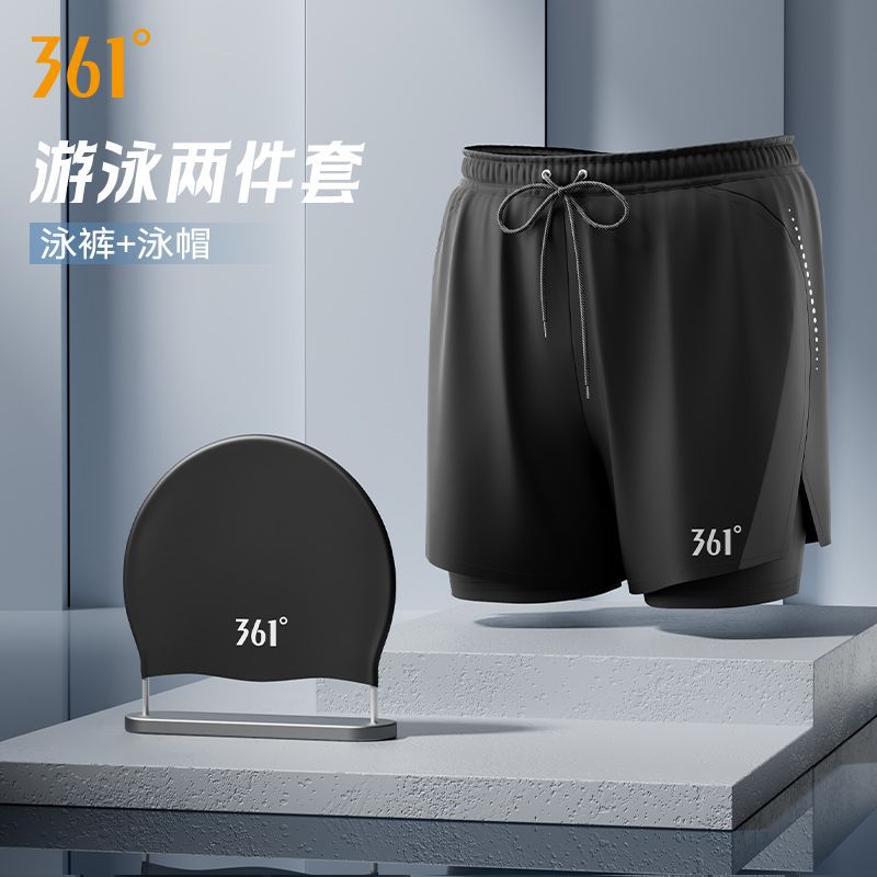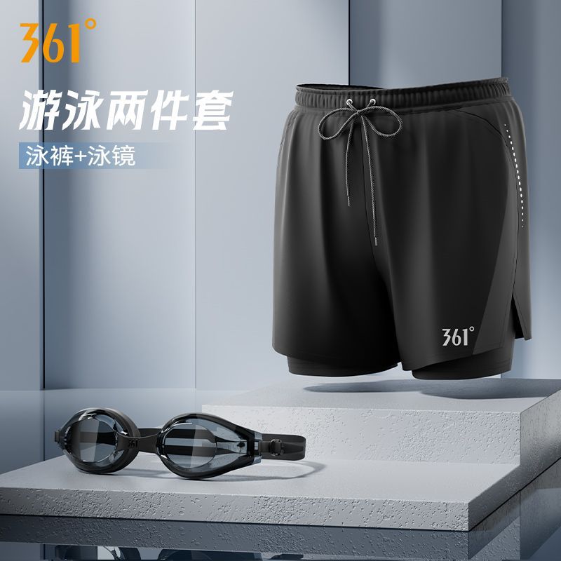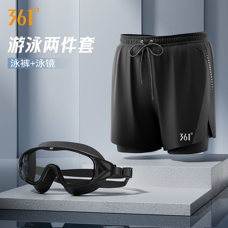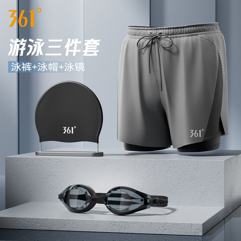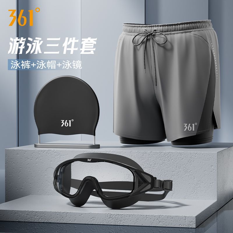 361 ° 수영 트렁크 남자 수영 트렁크 수영 모자 수영 고글 3 피스 안티 당혹감 비치 트렁크 청소년 수영 장비
