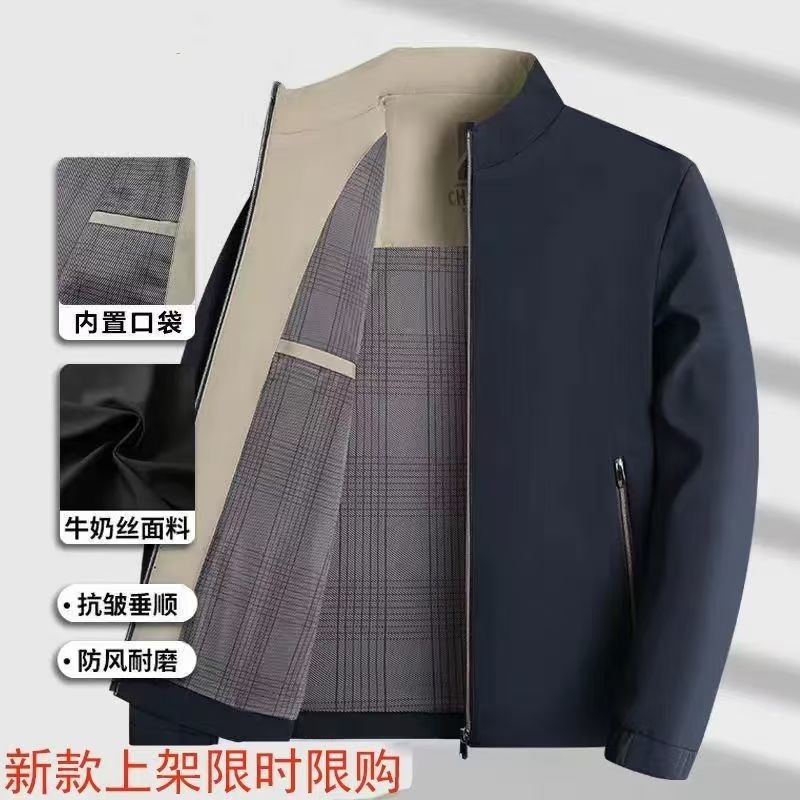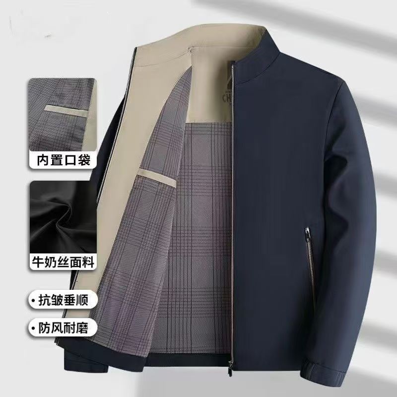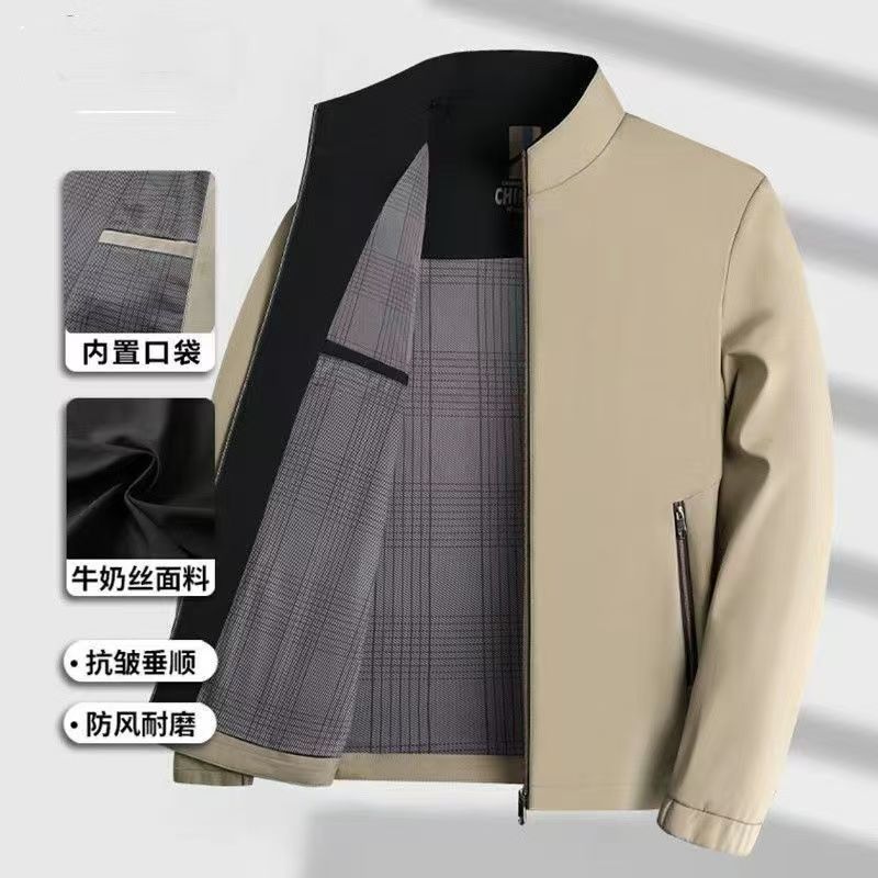 봄과 가을 새로운 중년 및 노인 남성 자켓 코트 캐주얼 칼라 아빠의 얇은 탑 옷 싱글 옷