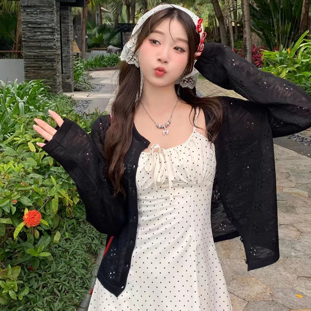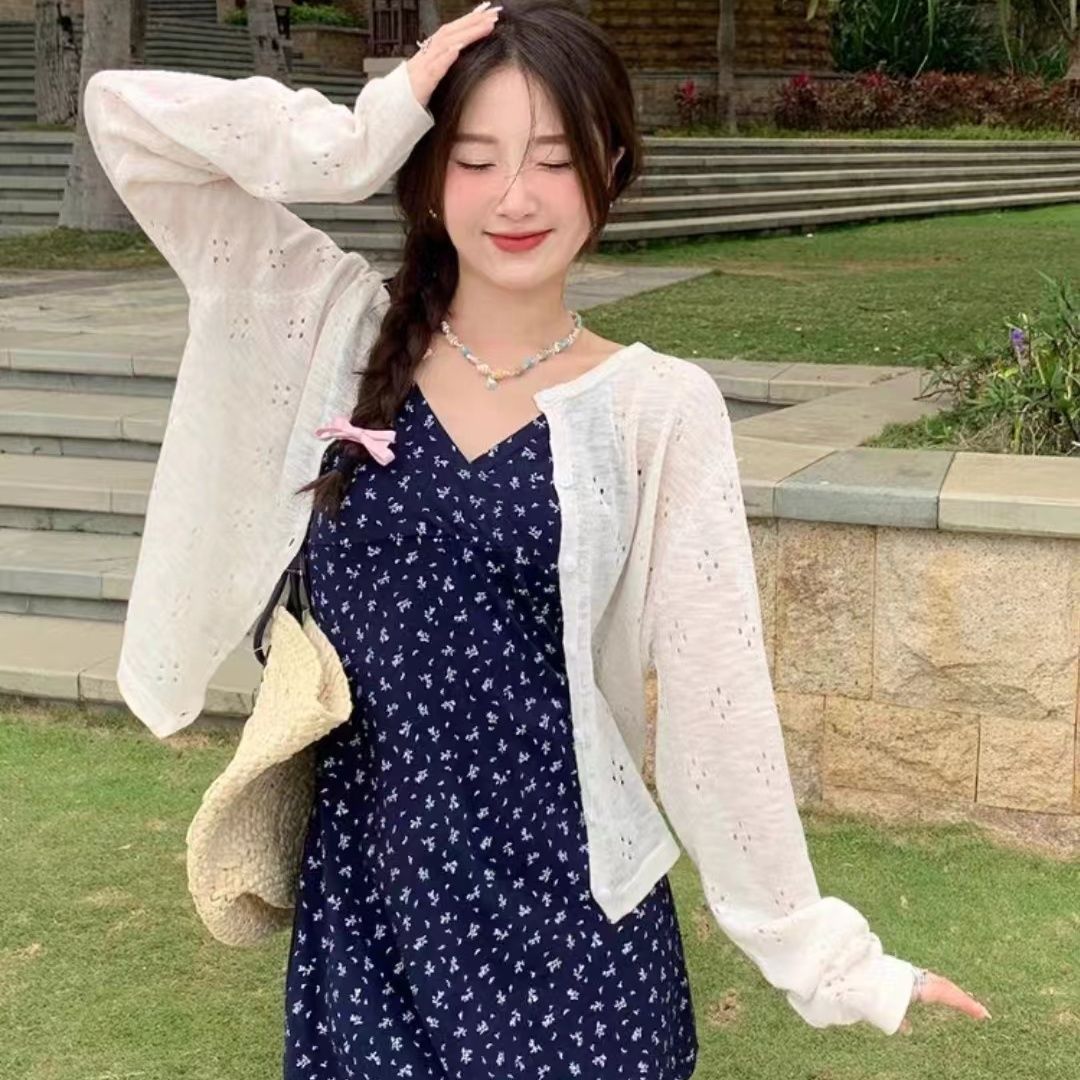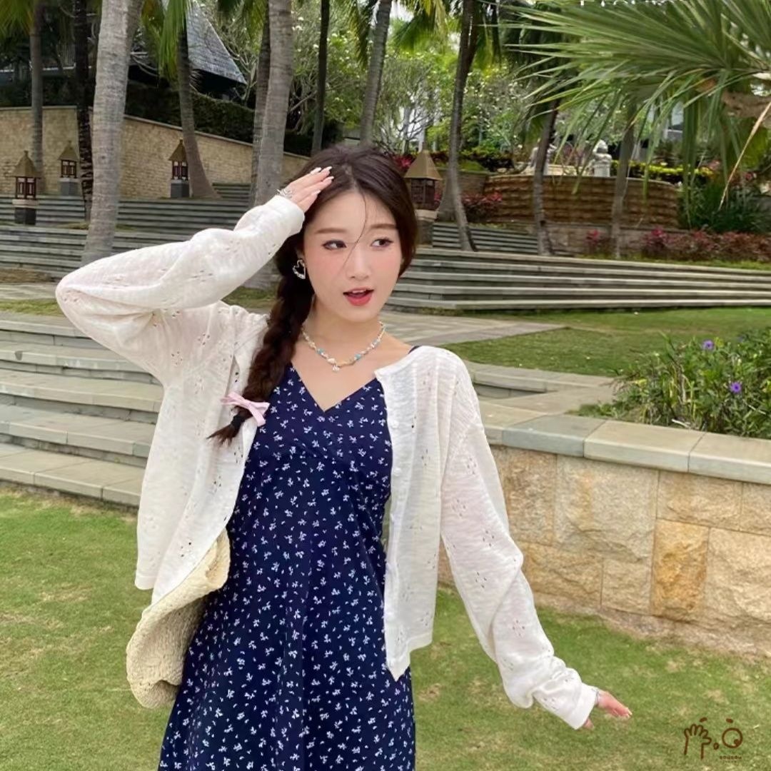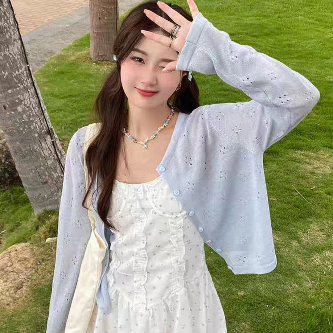 여름 섬 스타일 홀리데이 썬 스크린 소프트 왁스 카디건 얇은 여성 외부 재킷 자카드 캐주얼 블라우스 니트 스웨터스토어 가기