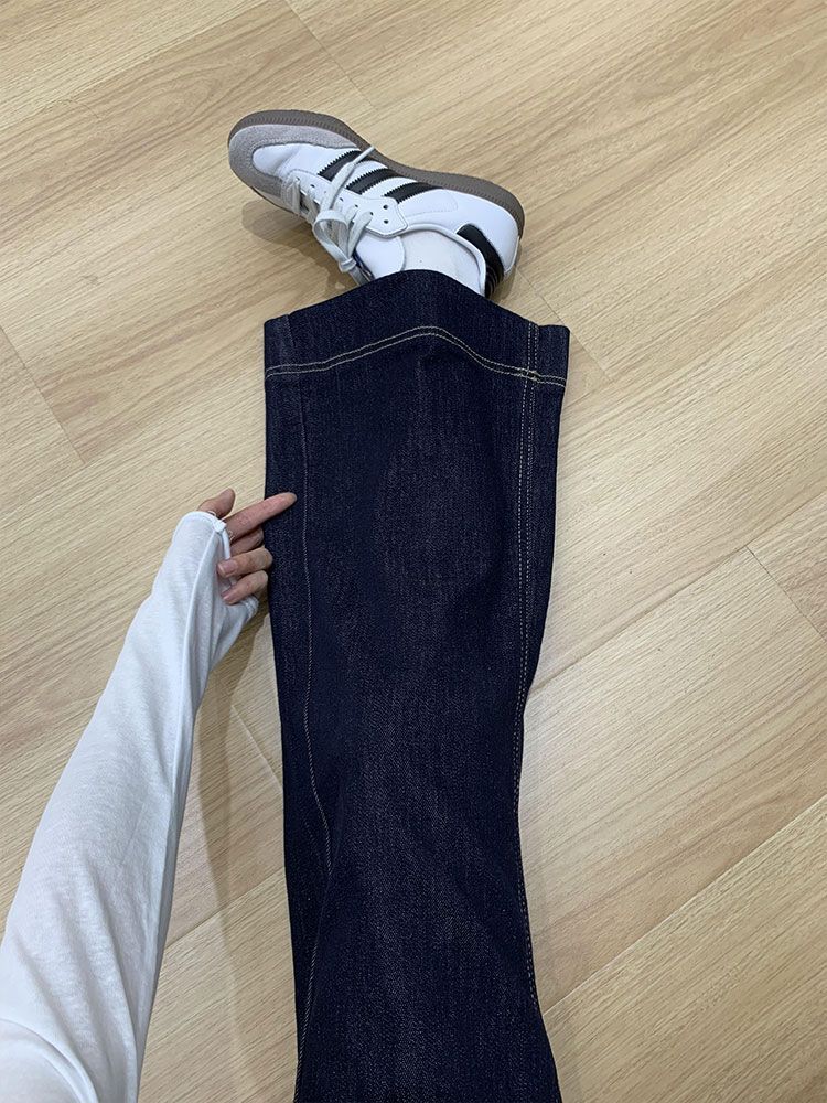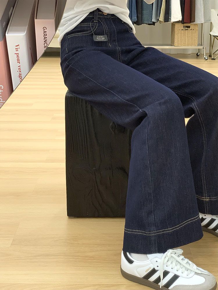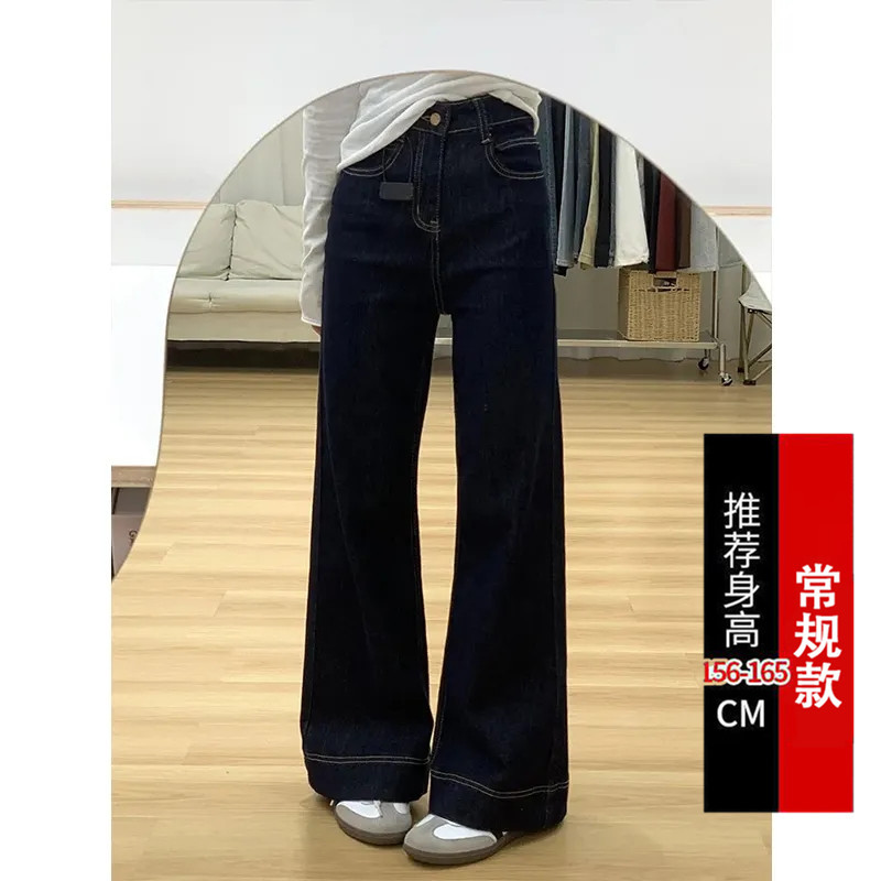 작은 타닌 블루 디자인 센스 인 미국 스타일 높은 허리 마이크로 혼 느슨한 슬림 슬림 넓은 다리 바지스토어 가기