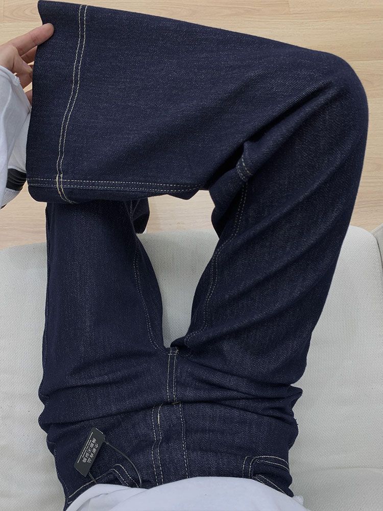 작은 타닌 블루 디자인 센스 인 미국 스타일 높은 허리 마이크로 혼 느슨한 슬림 슬림 넓은 다리 바지