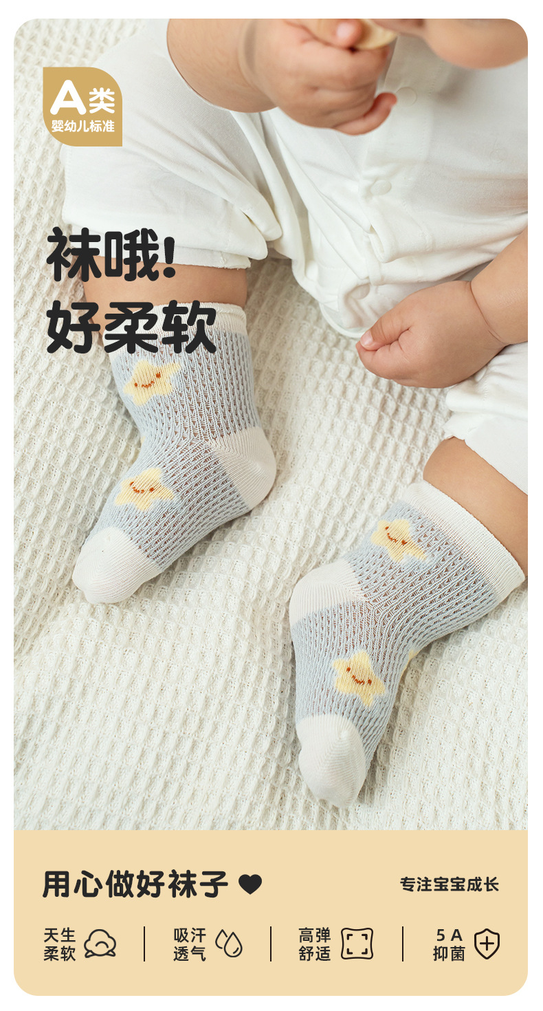 Tangram 아기 양말 여름 중간 튜브 코튼 양말 유아용 클래스 A 뼈없는 메쉬 양말 소년과 소녀 신생아 양말스토어 가기