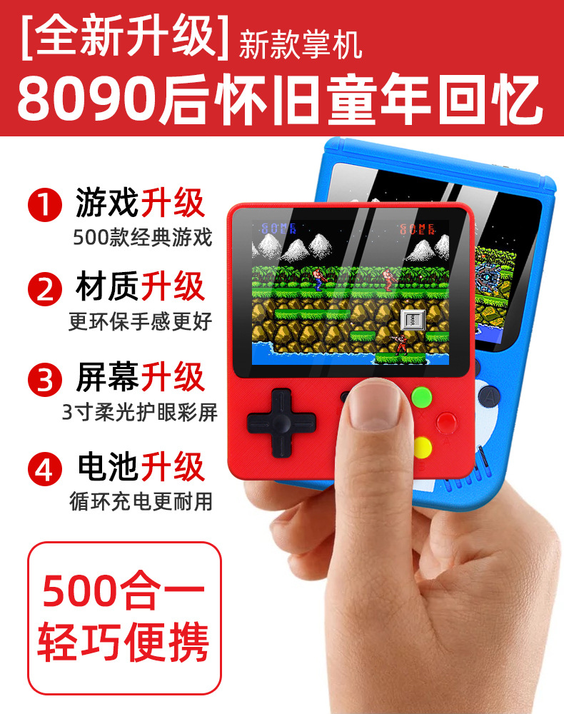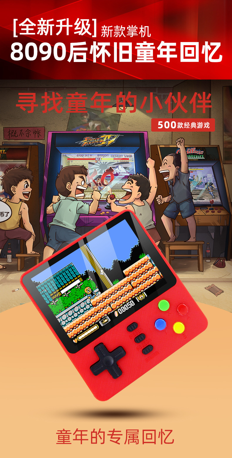 클래식 향수 휴대용 게임 콘솔 휴대용 500 게임 3inch 대형 스크린은 TV에 연결 가능 2인용 게임 콘솔