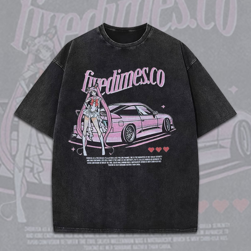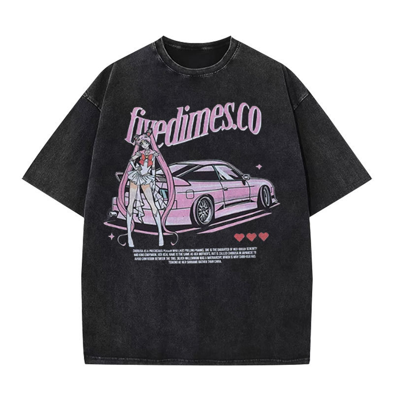 2025 여름 새로운 패션 브랜드 일본 레트로 남성과 여성을위한 반팔 티셔츠 하라주쿠 특대 아름다운 소녀 티셔츠