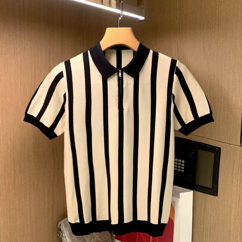 여름 느슨한 2025 니트 셔츠 반팔 새로운 유행 라운드 넥 유행 브랜드 남성 청소년 유행 캐주얼 트렌디 풀오버스토어 가기