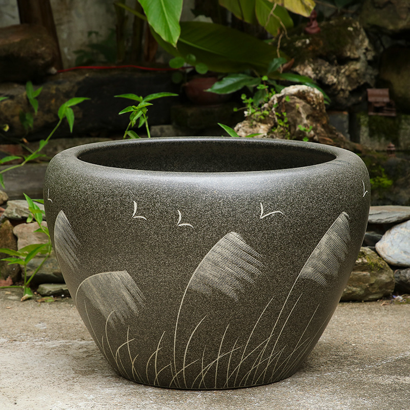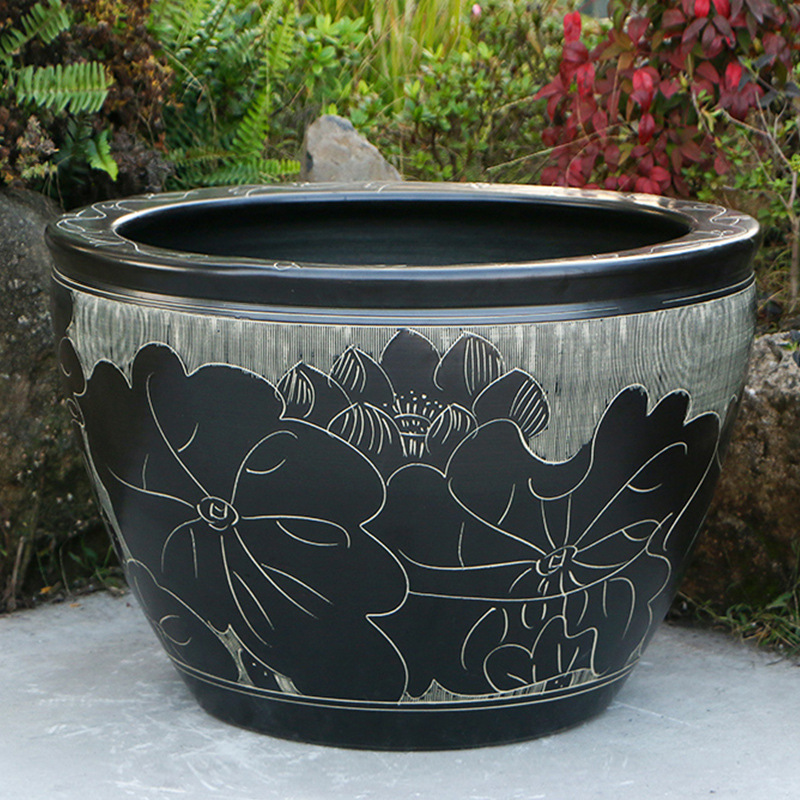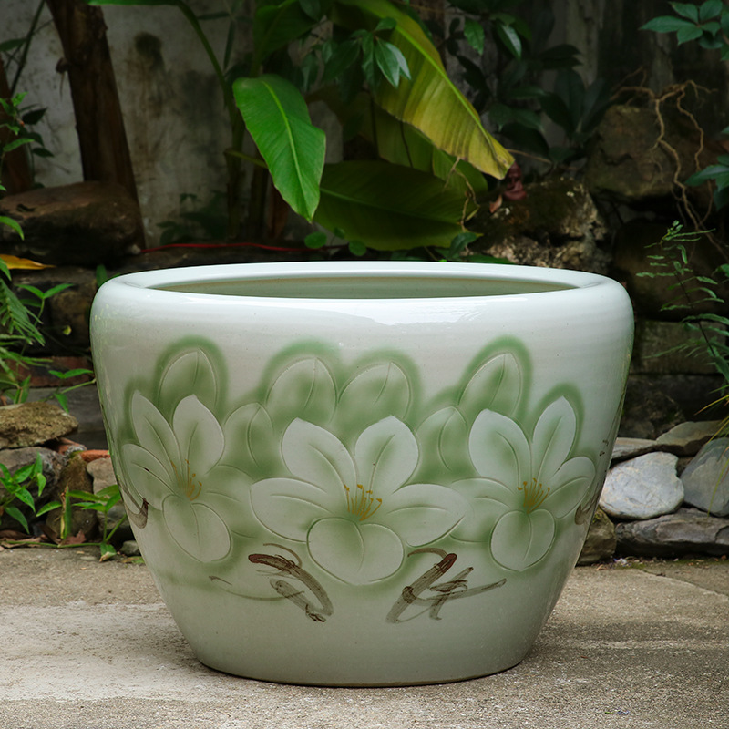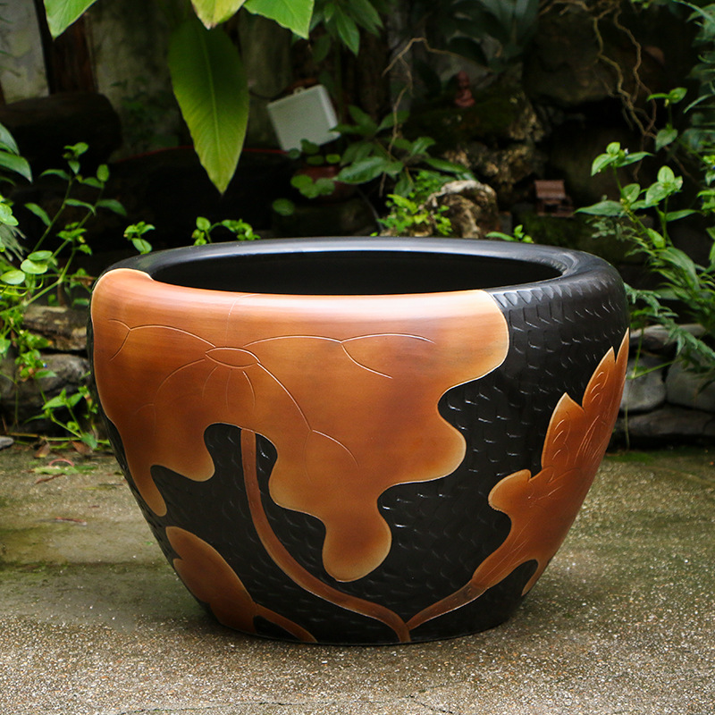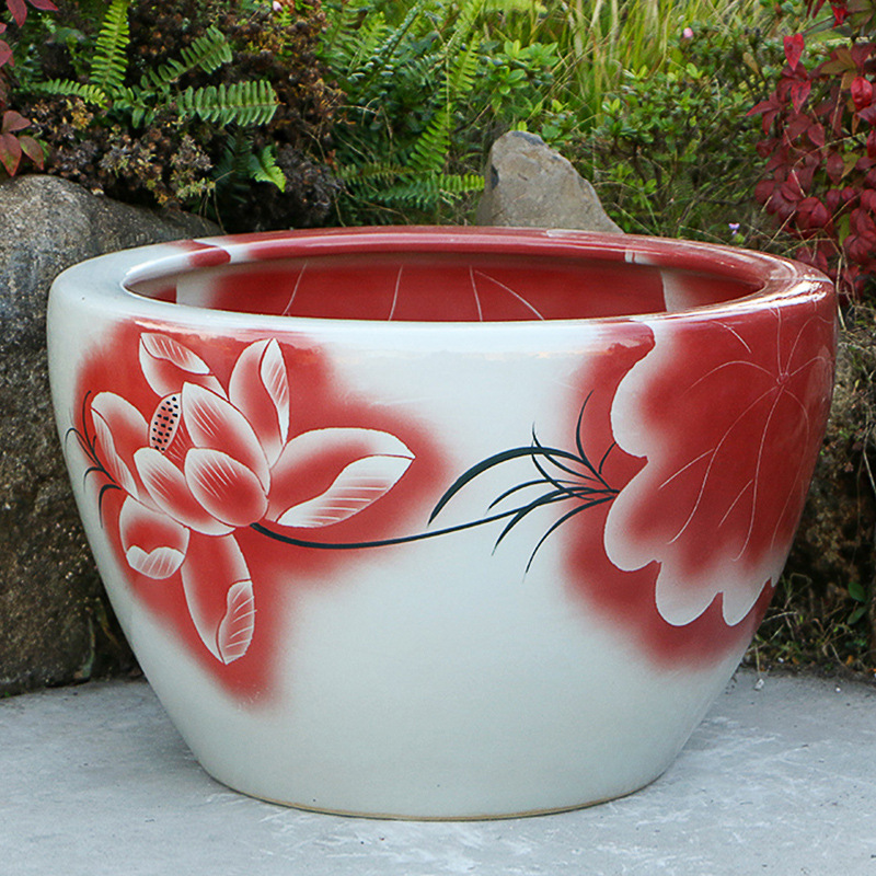 세라믹 물고기 탱크 물 탱크 물고기 증가 발코니 물 백합 연꽃 탱크 야외 안뜰 세라믹 대형 탱크 물고기 탱크 구식 대형 탱크
