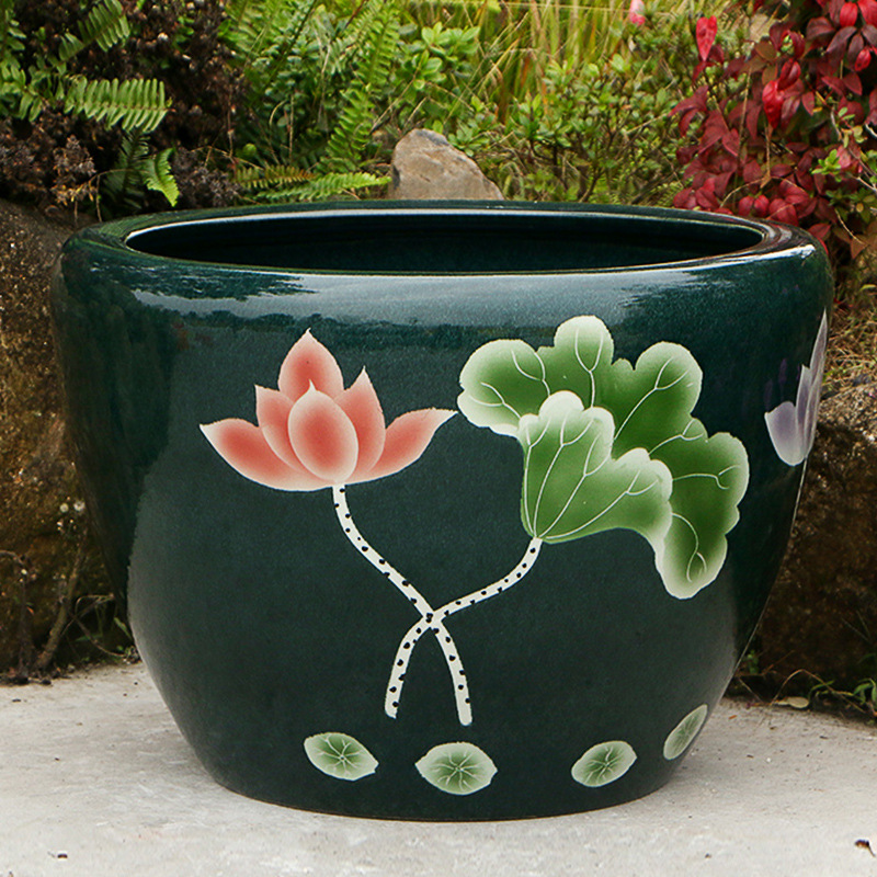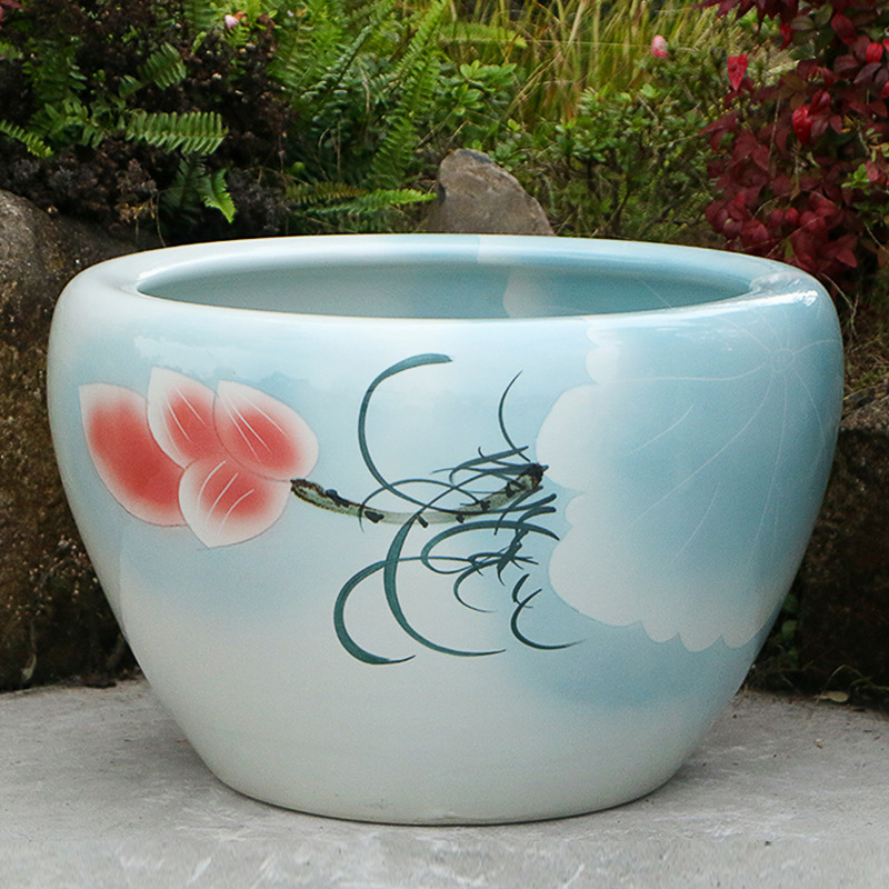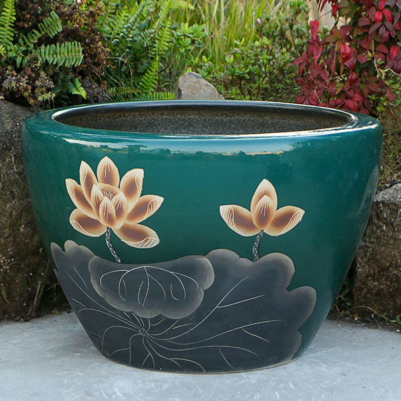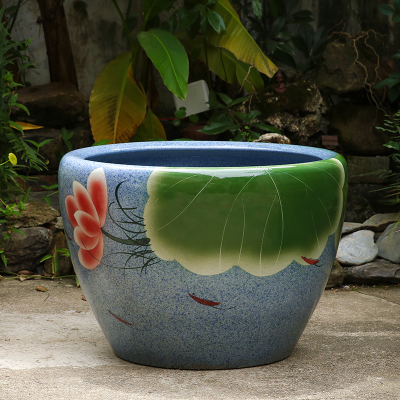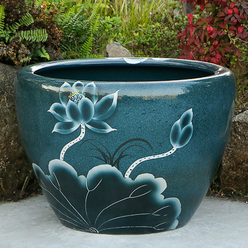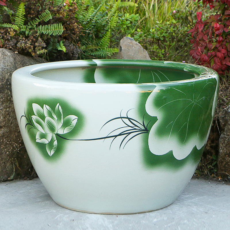 세라믹 물고기 탱크 물 탱크 물고기 증가 발코니 물 백합 연꽃 탱크 야외 안뜰 세라믹 대형 탱크 물고기 탱크 구식 대형 탱크스토어 가기