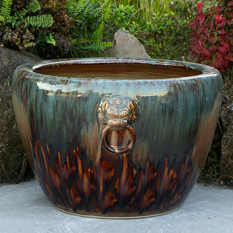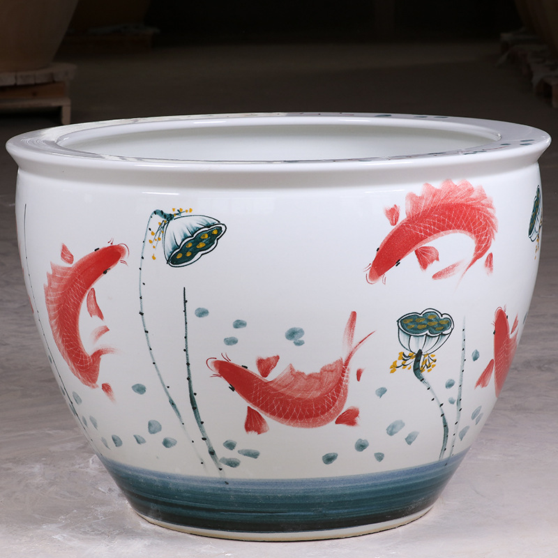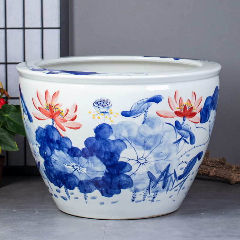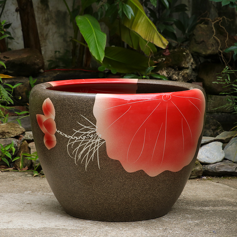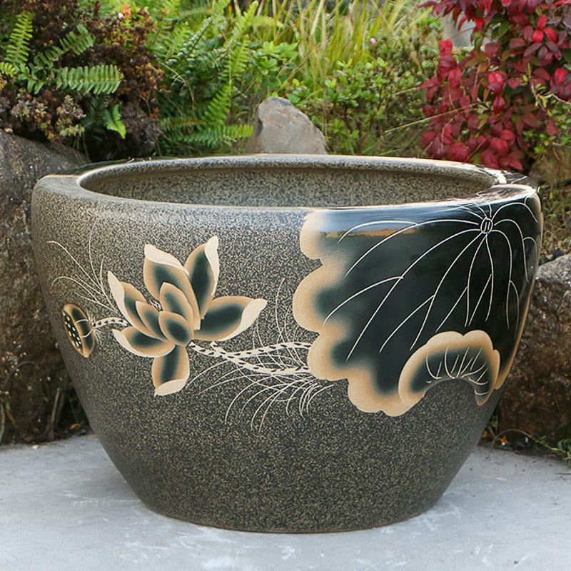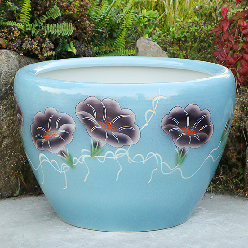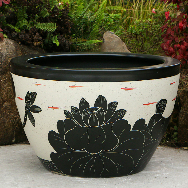 세라믹 물고기 탱크 물 탱크 물고기 증가 발코니 물 백합 연꽃 탱크 야외 안뜰 세라믹 대형 탱크 물고기 탱크 구식 대형 탱크스토어 가기