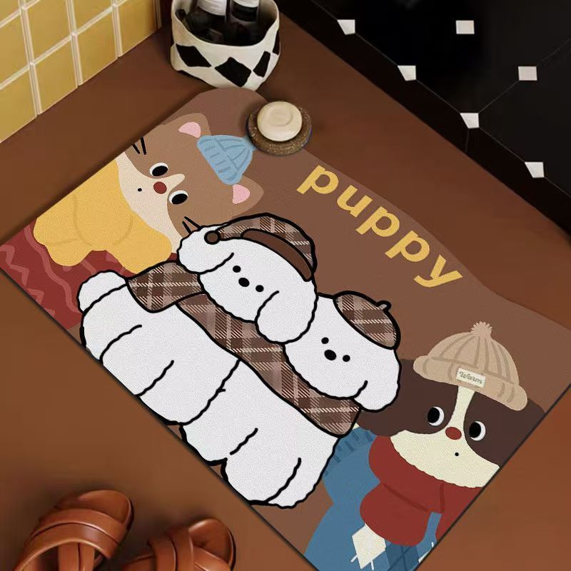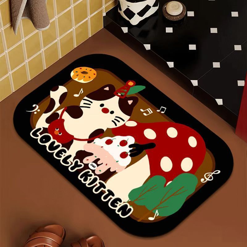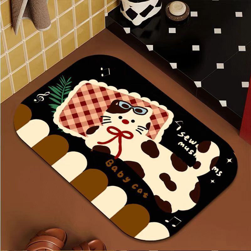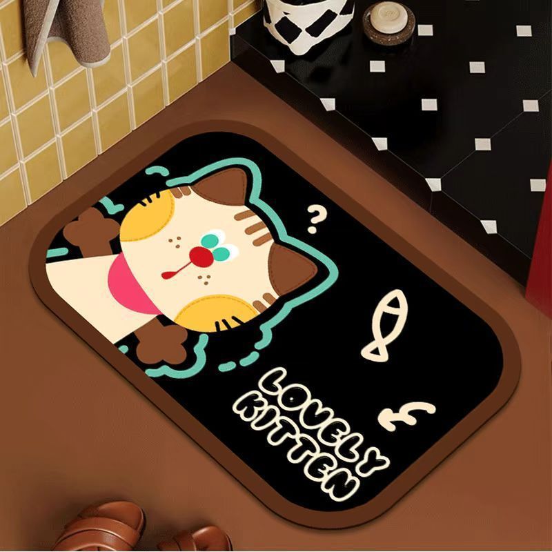 귀여운 만화 고양이 욕실 매트 샤워 룸 발 매트 화장실 물 흡수성 빠른 건조 미끄럼 방지 작은 매트