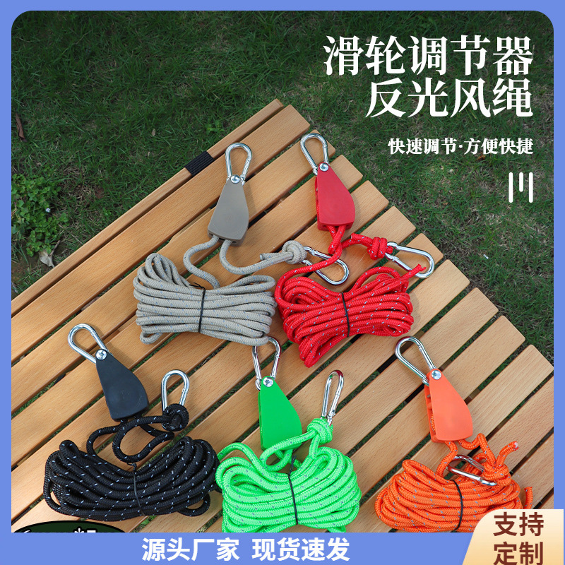✅ 야외 풀리 조절기, 텐트 고정 장치, 금속 리프팅 풀리, 반사 바람줄, 두꺼운 캐노피 파라솔 로프 6m