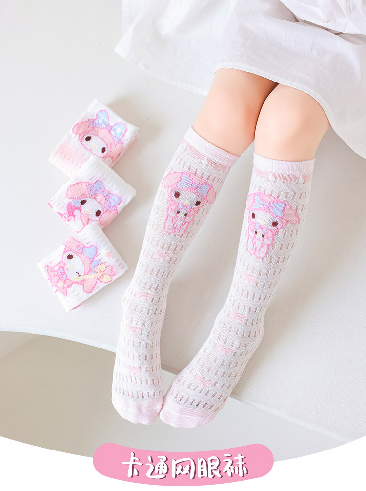 새로운 메쉬 어린이 양말 봄과 여름 얇은 만화 메가 티 소녀 중간 만화 만화 만화 만화 중형 및 대형 어린이 높은 양말