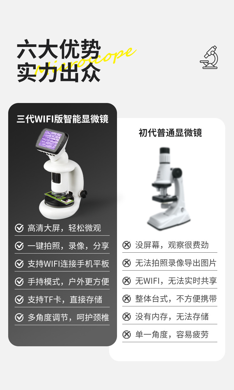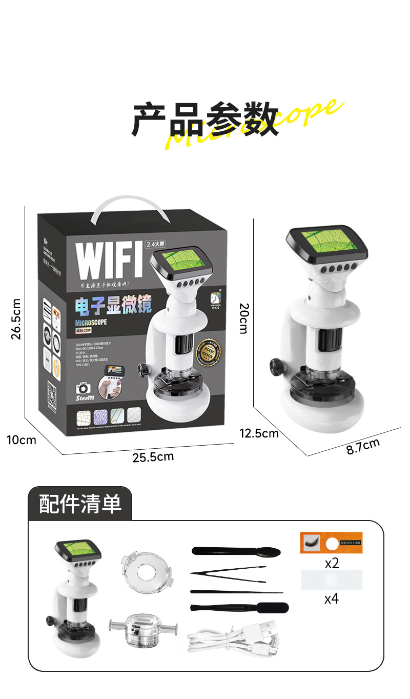 어린이 현미경 다기능 스마트 와이파이 전자 현미경 디스플레이 학생 과학 및 교육 선물 장난감