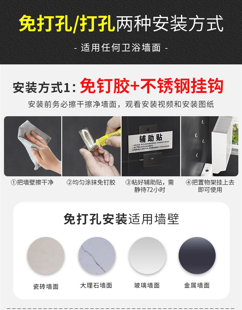 • [구멍을 뚫을 필요가 없습니다] 업그레이드된 화이트보드 벽 캐비닛