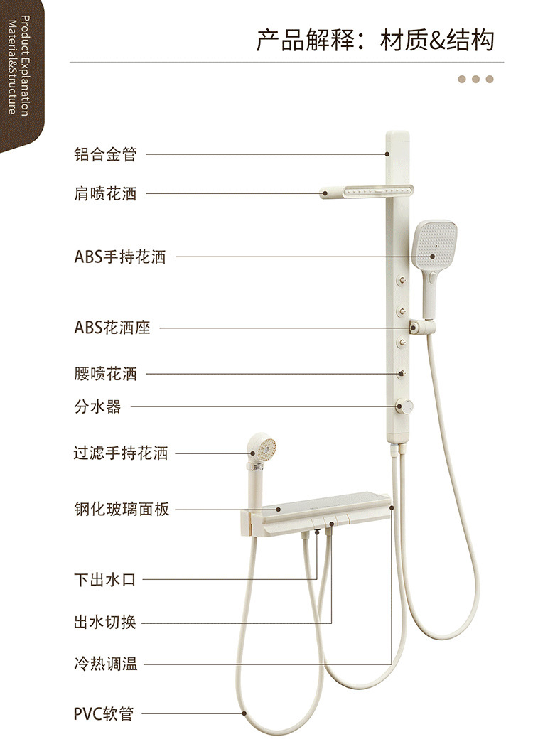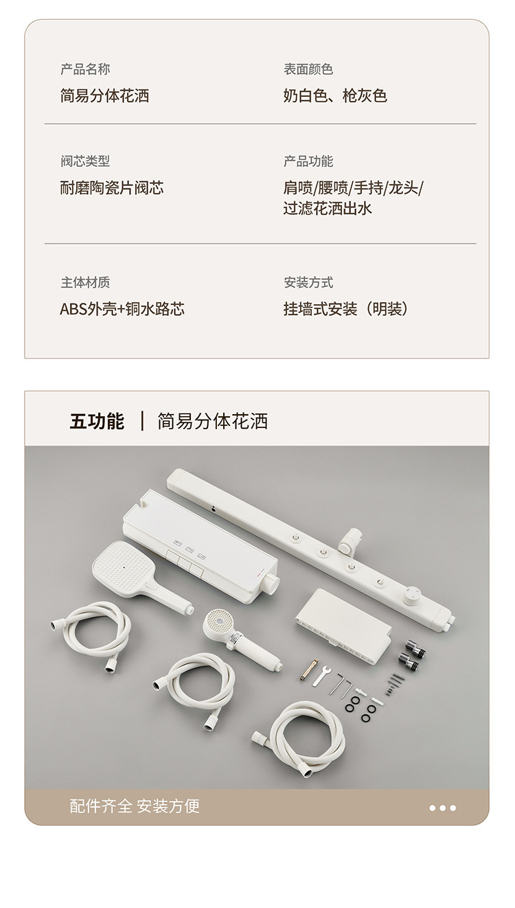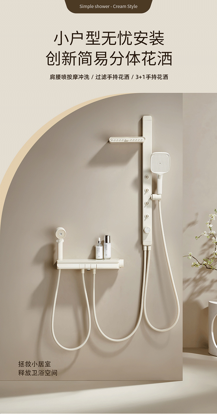 대형 피아노 키 미니멀리스트 밀크 화이트 샤워 세트 작은 아파트 어깨 허리 제트 압축 욕조 분할 샤워 가구스토어 가기