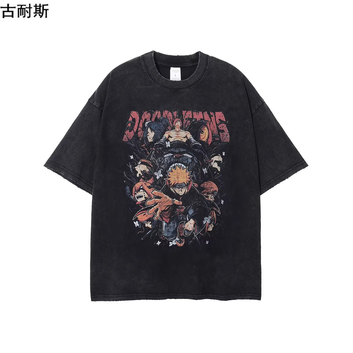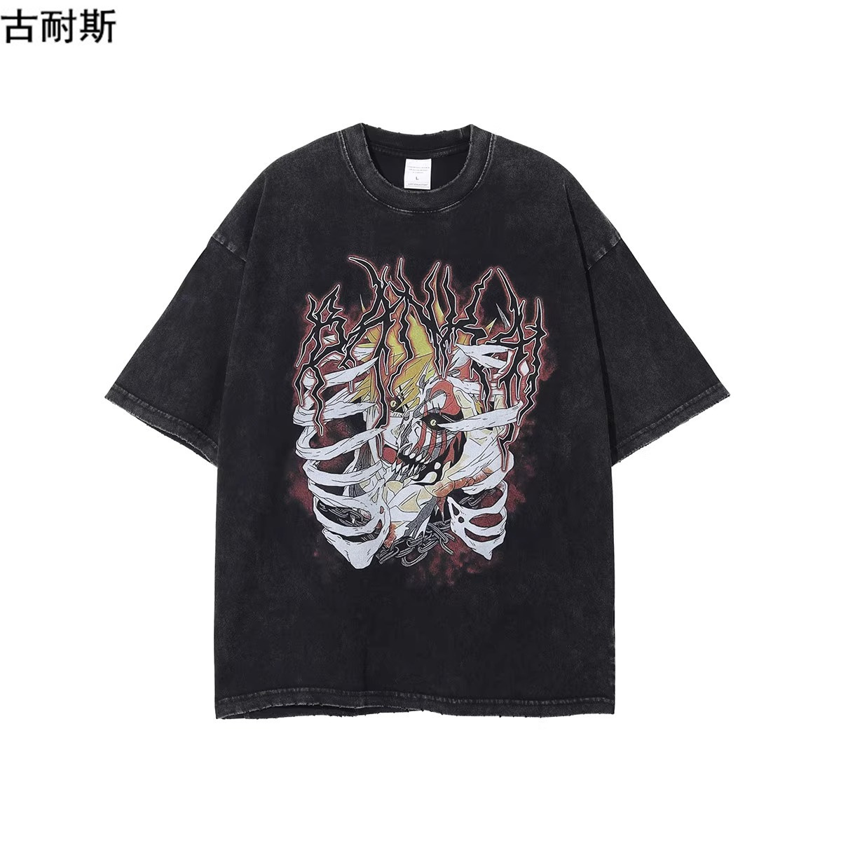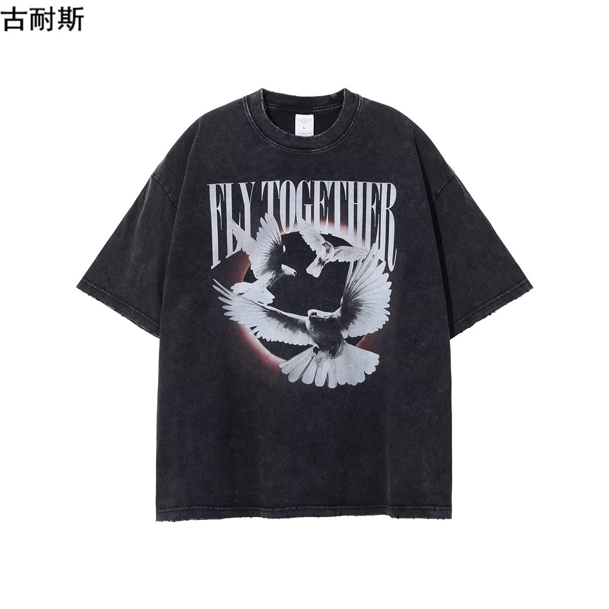 국경 간 도매 유럽과 미국 스타일의 하이 스트리트 프린트 반팔 티셔츠 남성용 오버 사이즈 낡은 탑 인스토어 가기