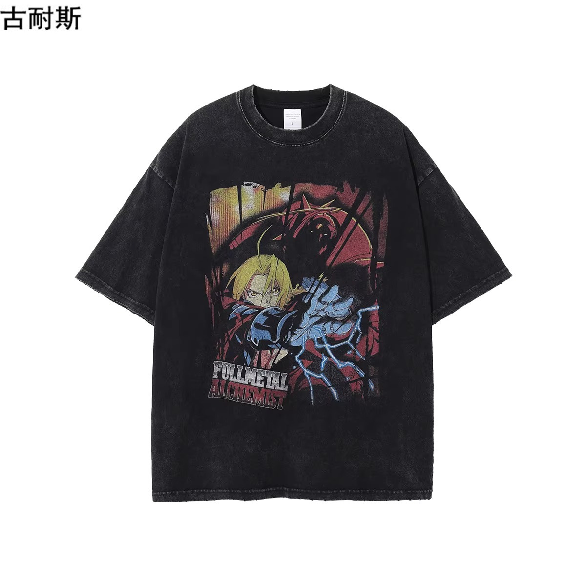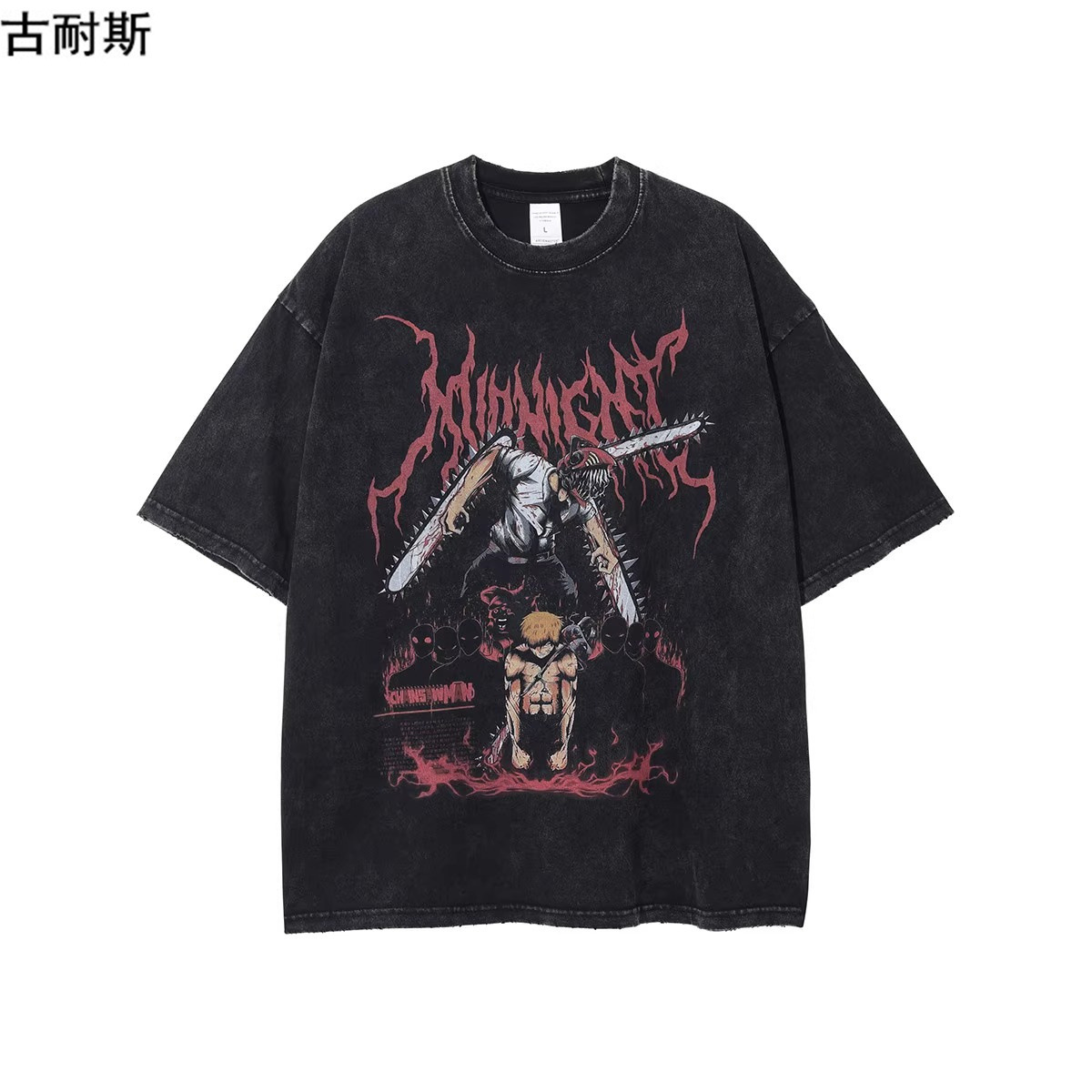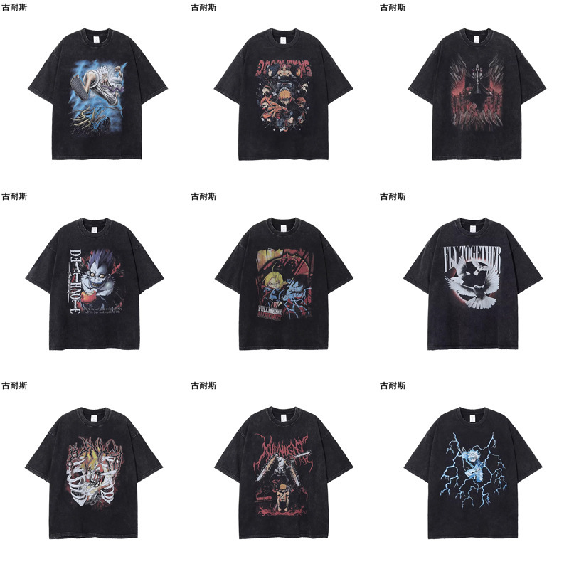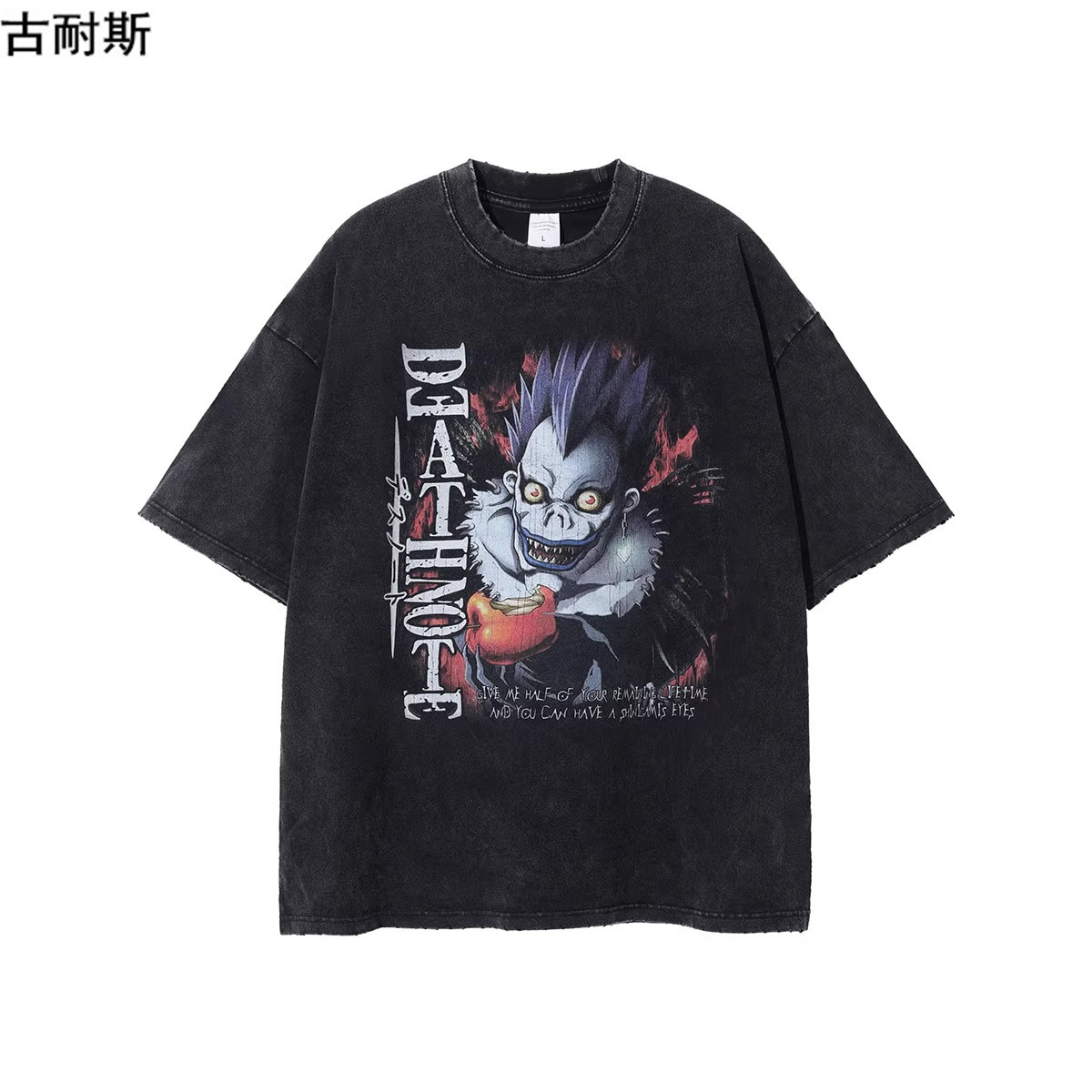 국경 간 도매 유럽과 미국 스타일의 하이 스트리트 프린트 반팔 티셔츠 남성용 오버 사이즈 낡은 탑 인스토어 가기