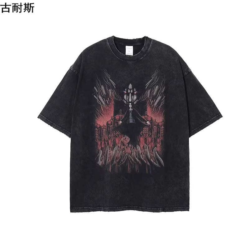 국경 간 도매 유럽과 미국 스타일의 하이 스트리트 프린트 반팔 티셔츠 남성용 오버 사이즈 낡은 탑 인