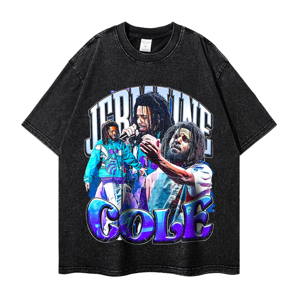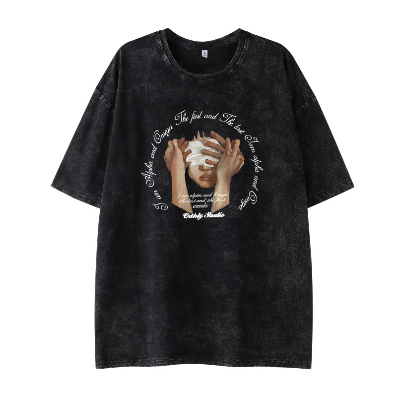 대외 무역 아마존 오래 된 짧은 소매 티셔츠 남성 여름 거리 조커 힙합 프린트 재킷 도매
