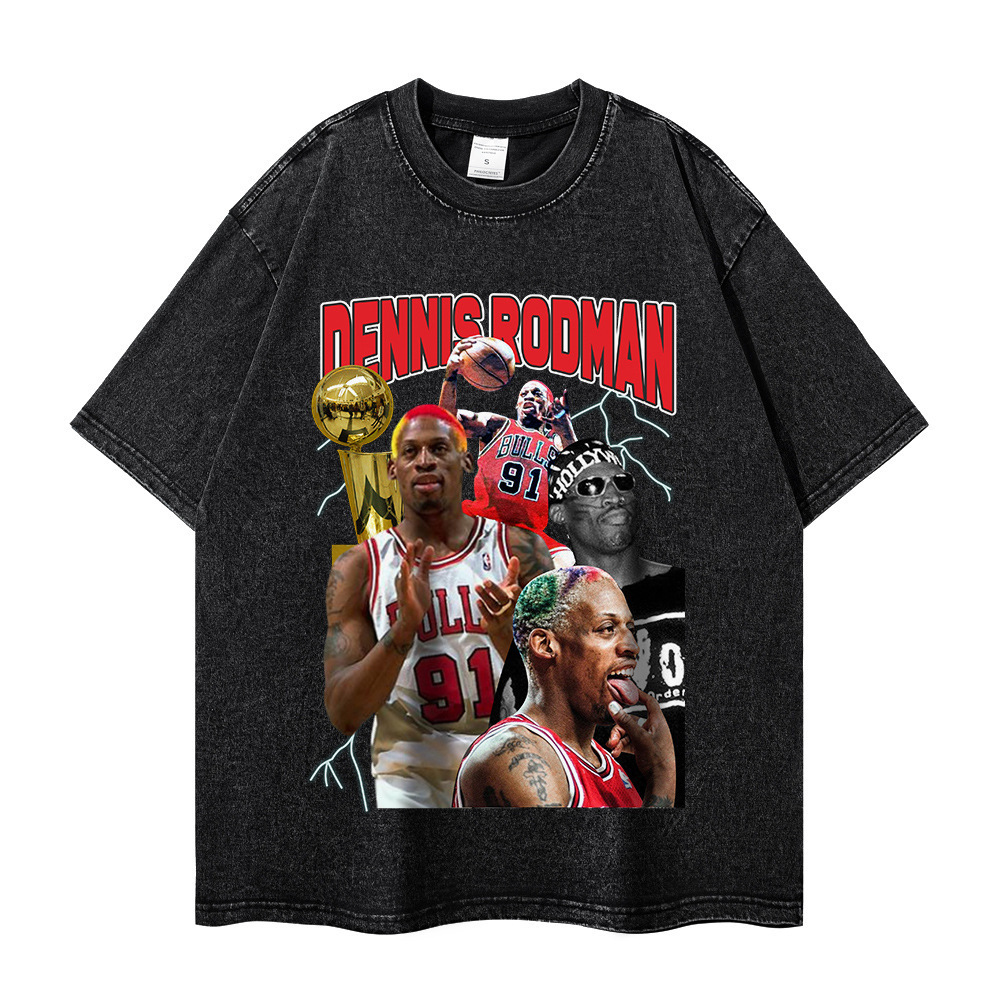 대외 무역 아마존 오래 된 짧은 소매 티셔츠 남성 여름 거리 조커 힙합 프린트 재킷 도매스토어 가기