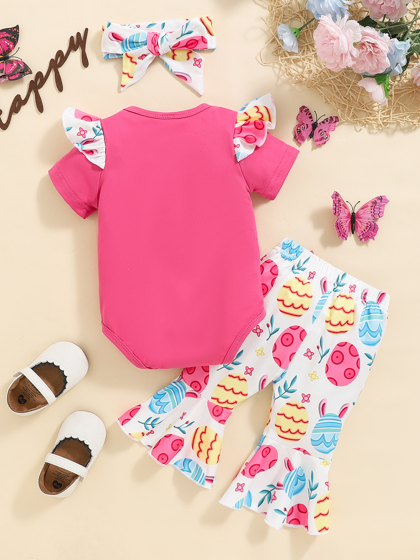 국경 간 대외 무역 부활절 아기 소녀 세트 여름 인형 귀여운 인쇄 점프 수트 플레어 바지 3 피스 세트스토어 가기