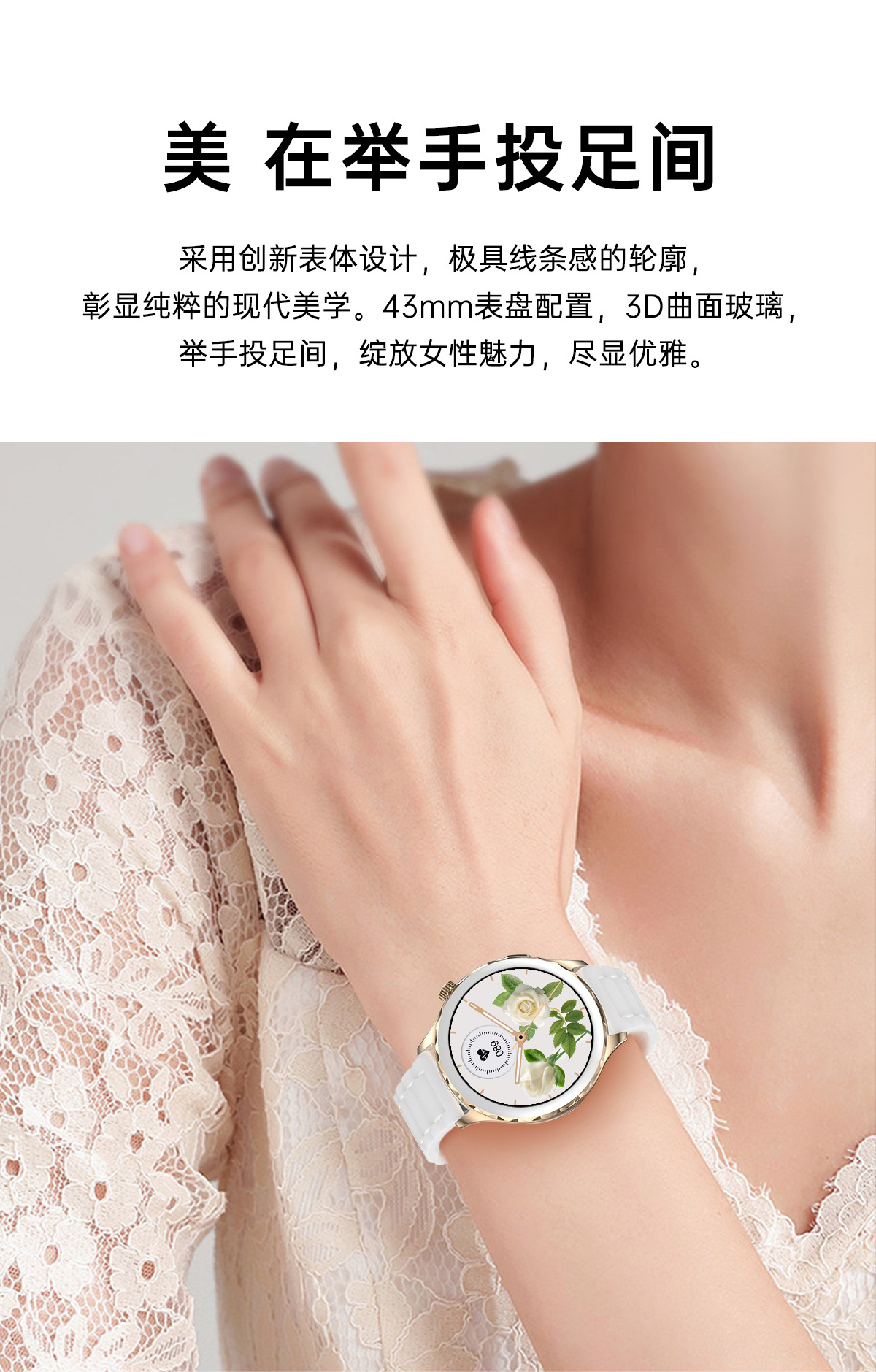 세라믹 여성 AK43 블루투스 통화 스마트 시계 심박수 혈압 음악 멀티 스포츠 스마트 시계 국경스토어 가기