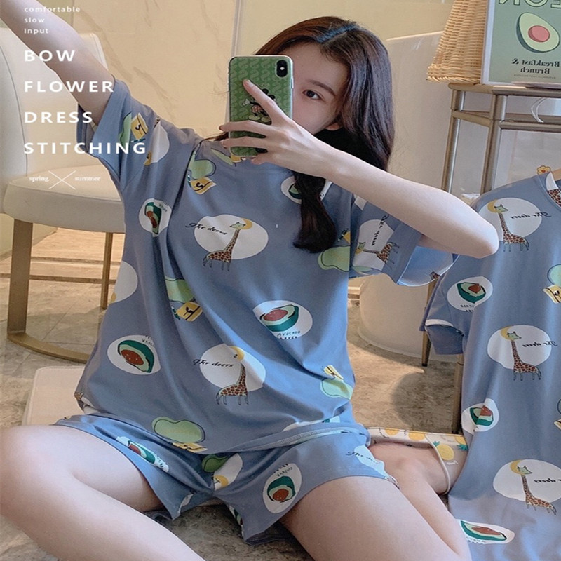 공장 재고 잠옷 여성의 2025 여름 시원한 편안한 캐주얼 달콤한 만화 짧은 소매 반바지 홈 의류 세트