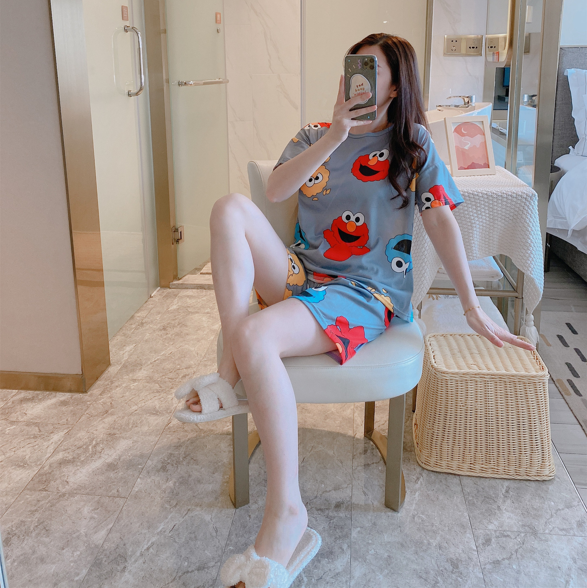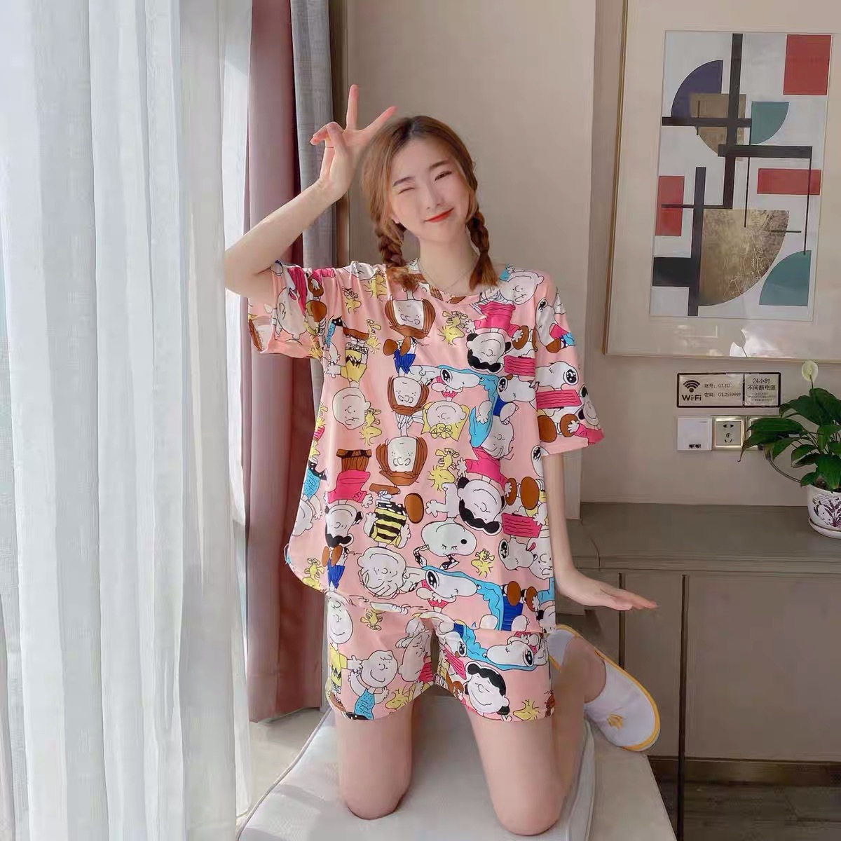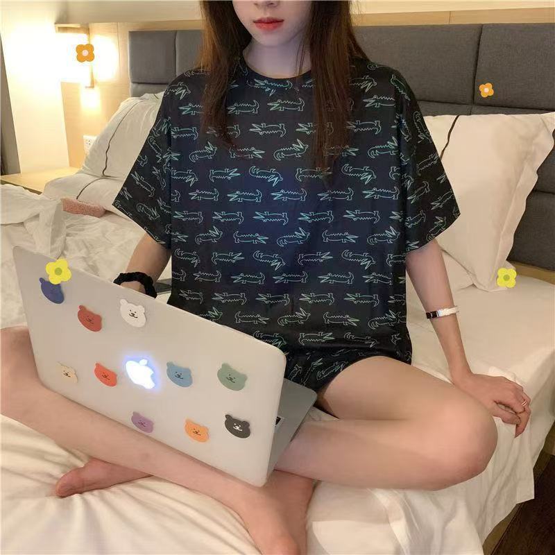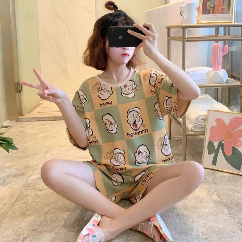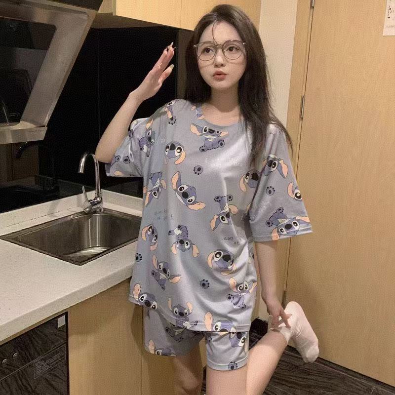 공장 재고 잠옷 여성의 2025 여름 시원한 편안한 캐주얼 달콤한 만화 짧은 소매 반바지 홈 의류 세트스토어 가기