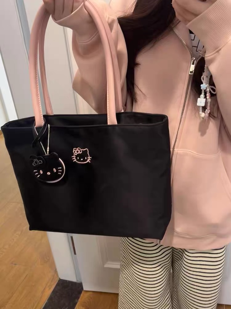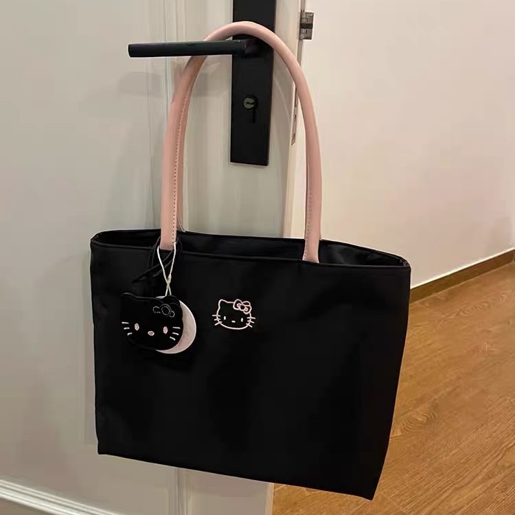 귀여운 절묘한 소녀 통근 대용량 토트 백 키티 자수 핸드백 여성용 경량 언더암 핸드 백