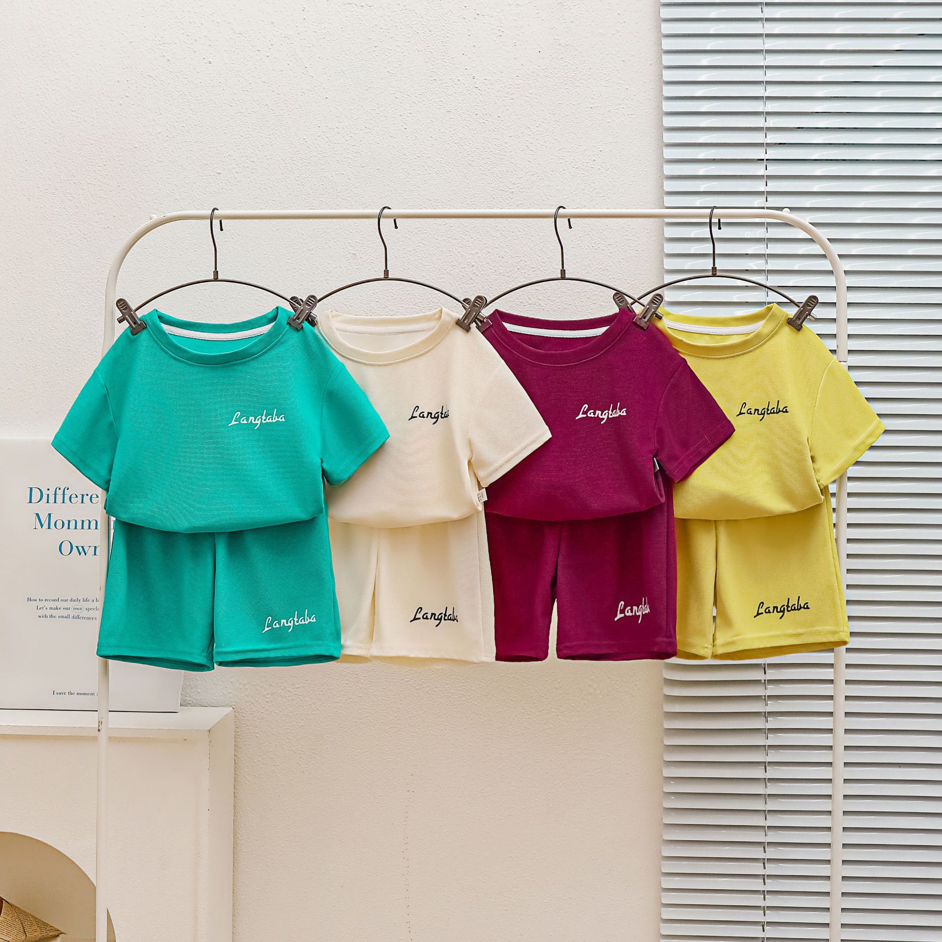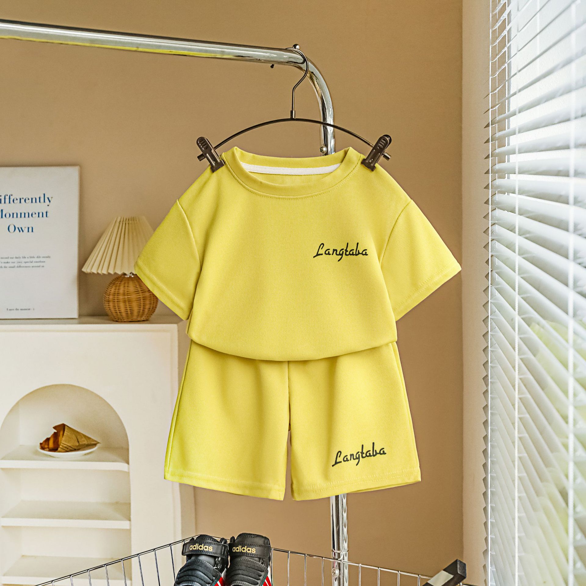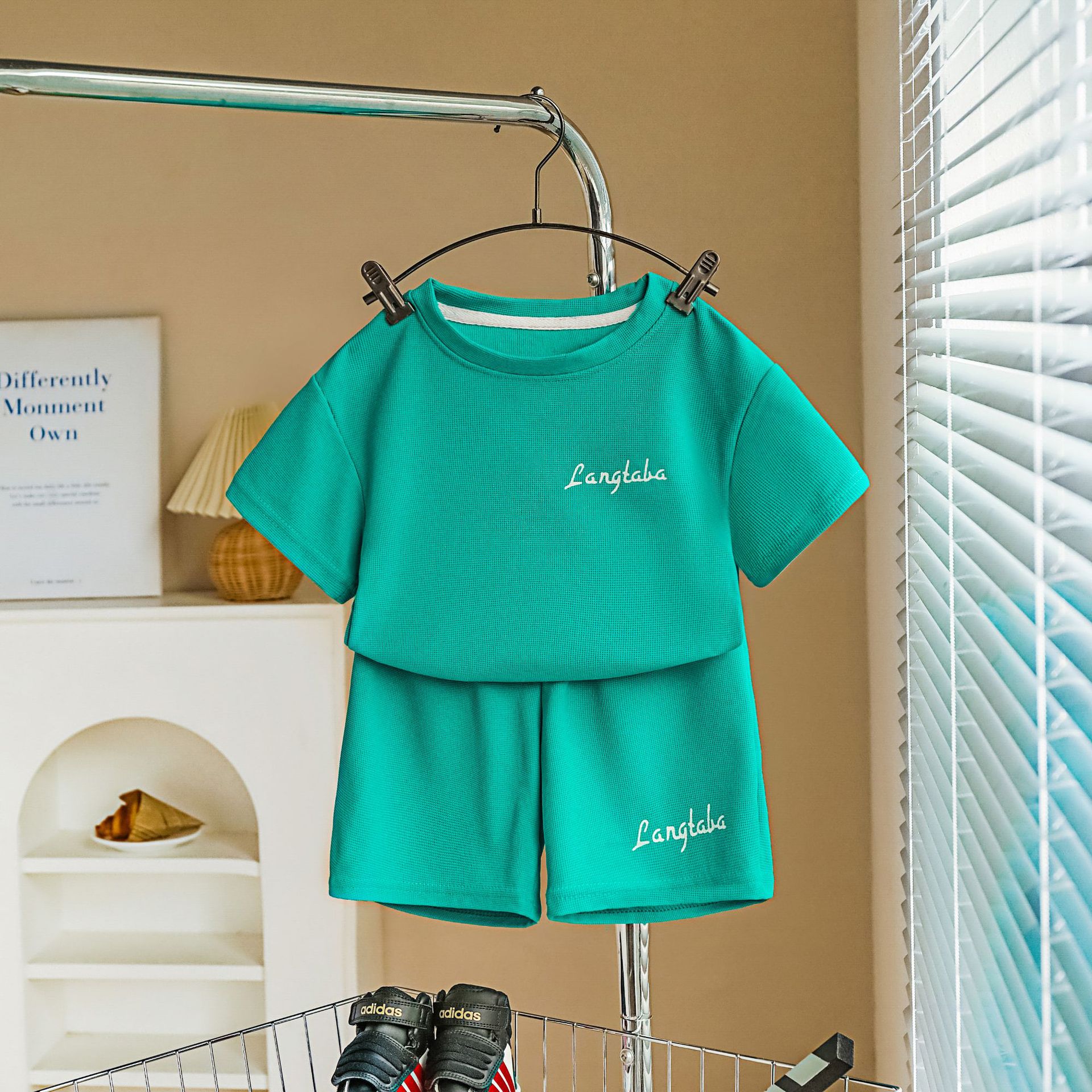 어린이 여름 세트 새로운 반팔 투피스 스포츠웨어 소년 캐주얼 느슨한 한국 아동복 제조 업체 도매