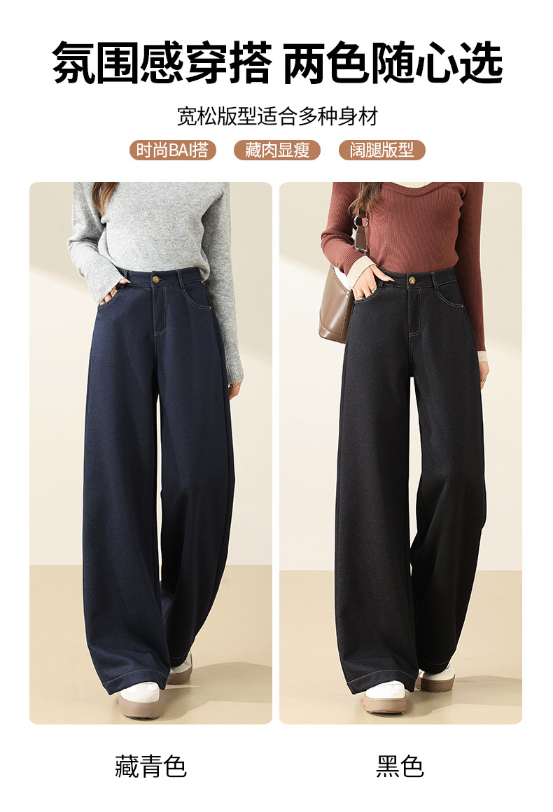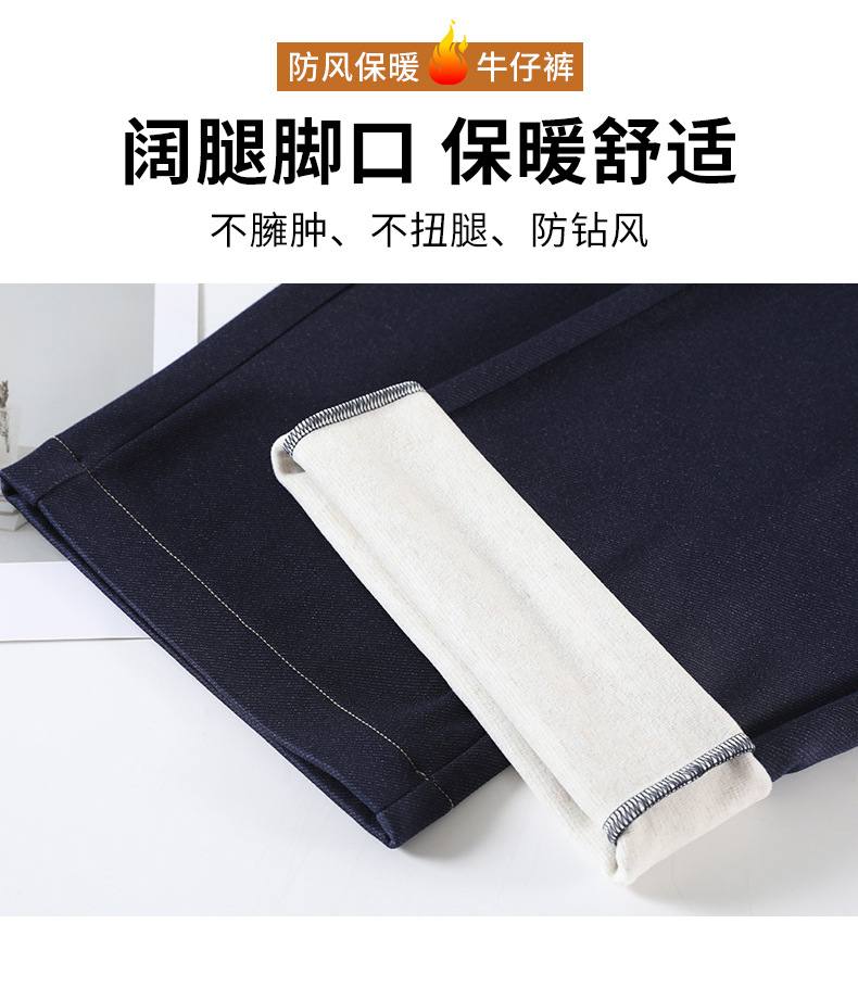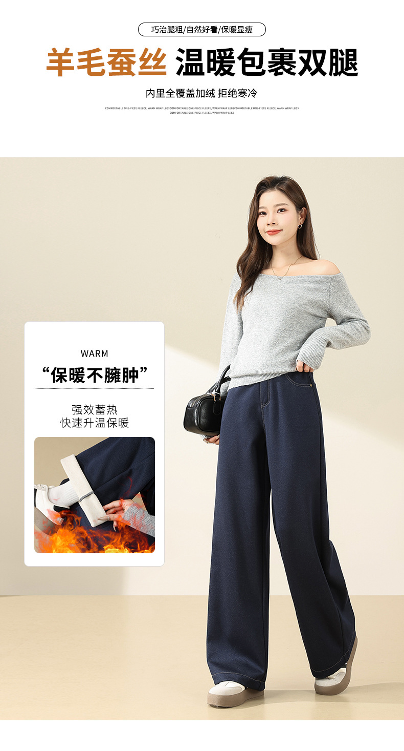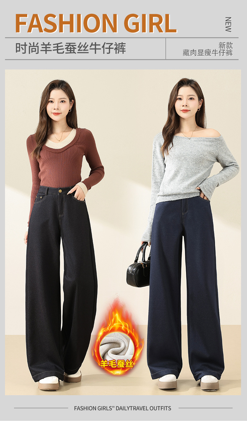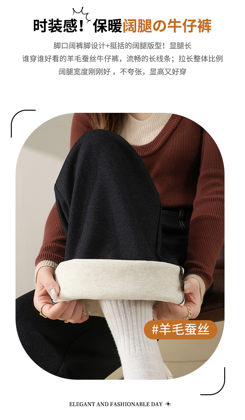 공장 직판 [울 실크 청바지] 여성용 벨벳 두꺼운 캐주얼 팬츠, 하이웨이스트 신축성 있는 따뜻한 와이드 팬츠