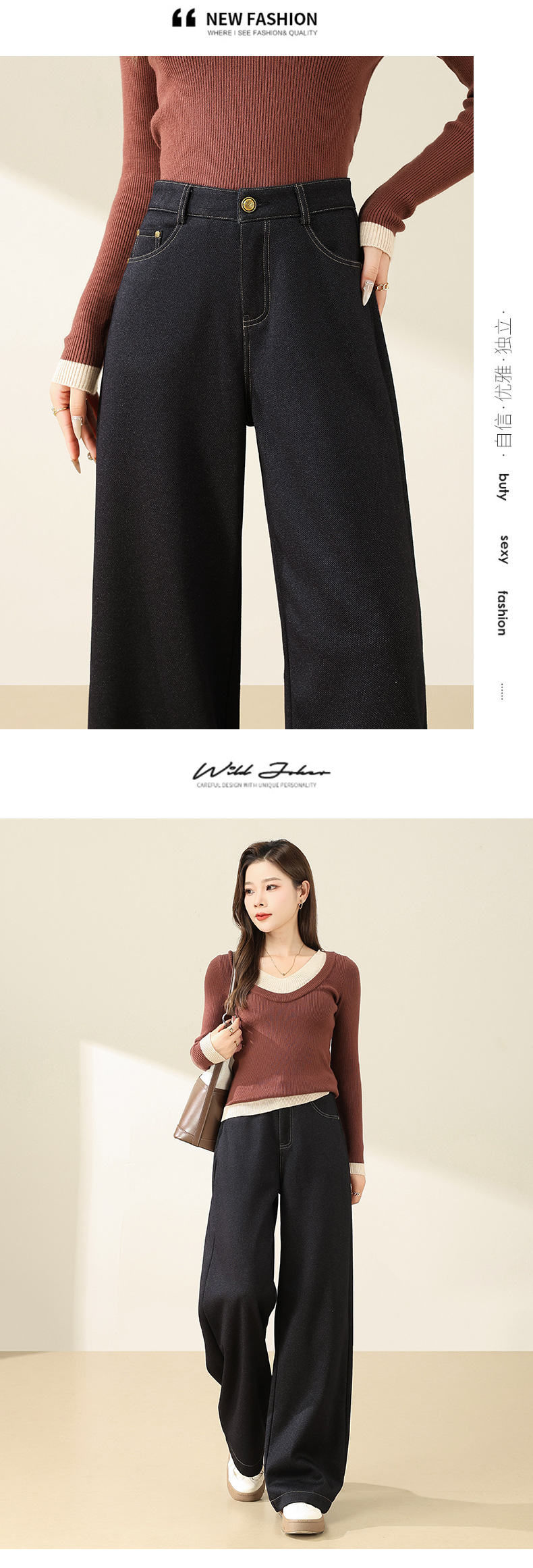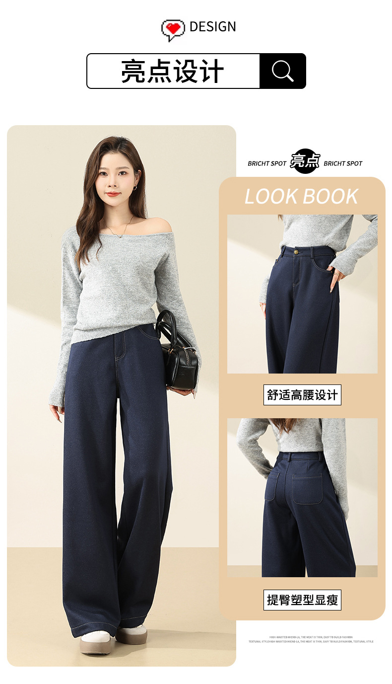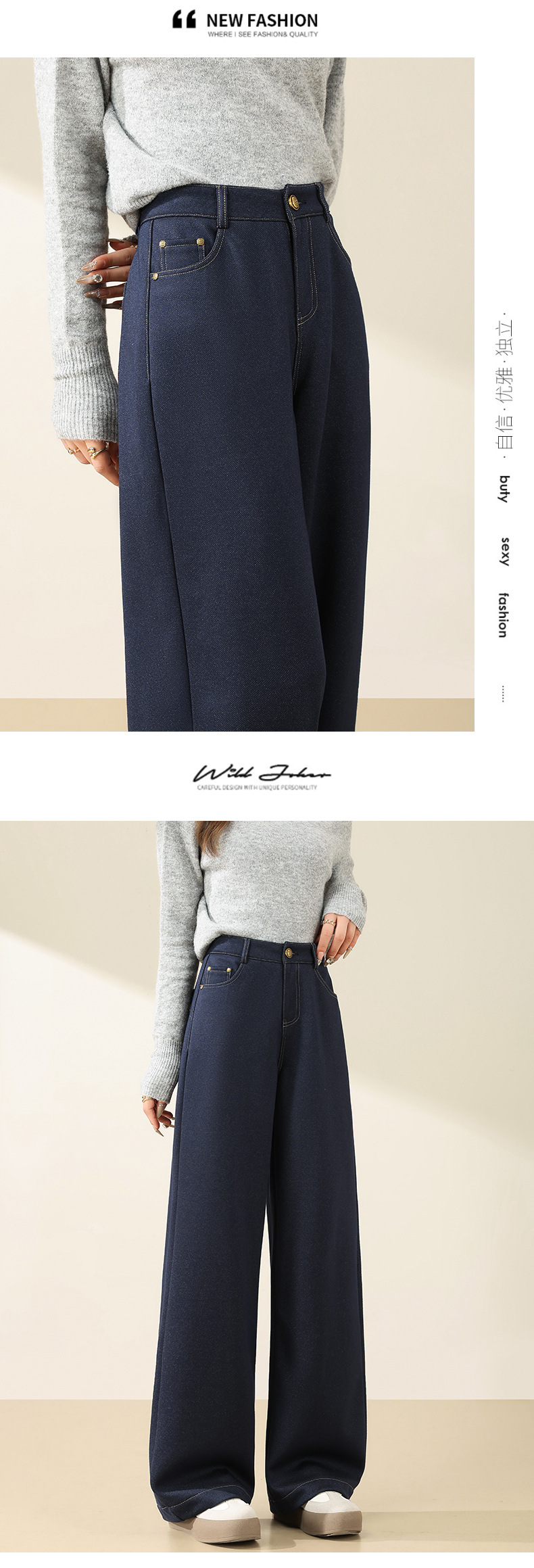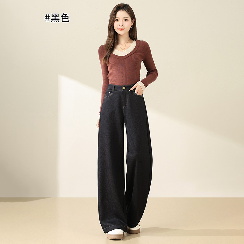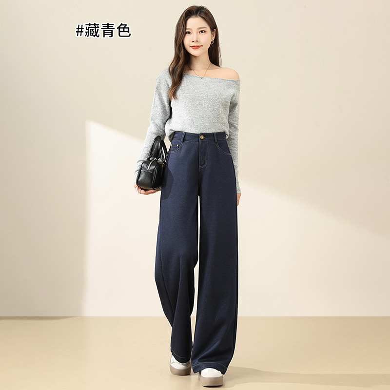 공장 직판 [울 실크 청바지] 여성용 벨벳 두꺼운 캐주얼 팬츠, 하이웨이스트 신축성 있는 따뜻한 와이드 팬츠