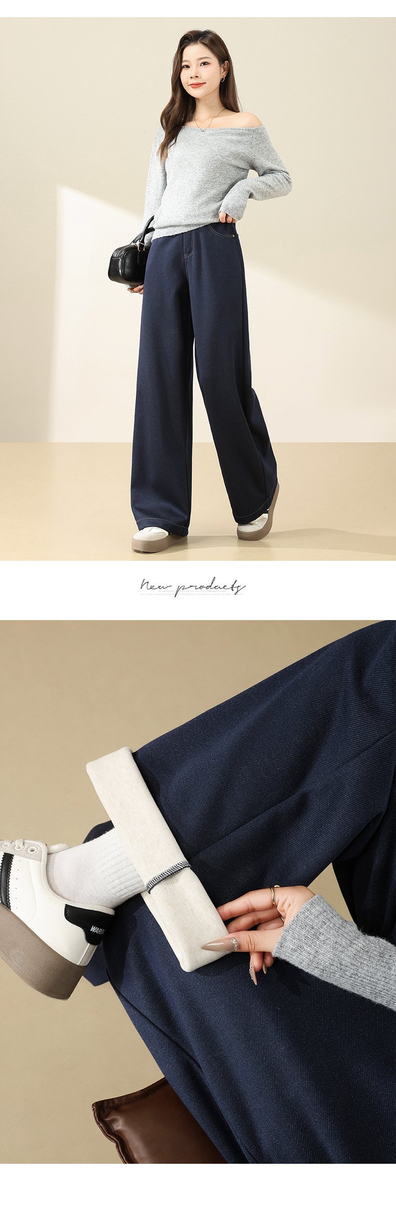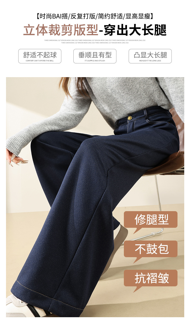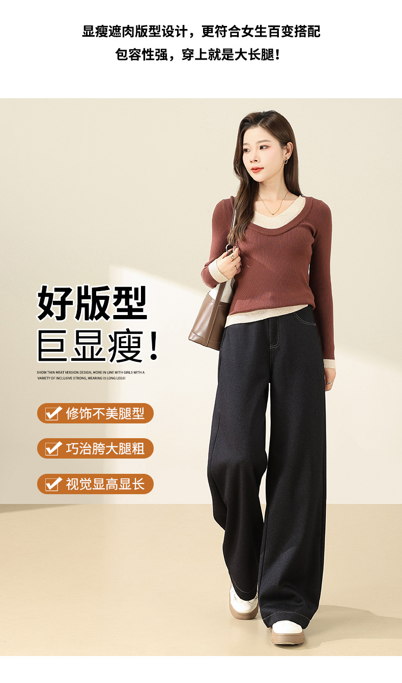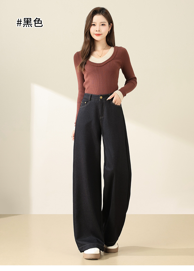 공장 직판 [울 실크 청바지] 여성용 벨벳 두꺼운 캐주얼 팬츠, 하이웨이스트 신축성 있는 따뜻한 와이드 팬츠