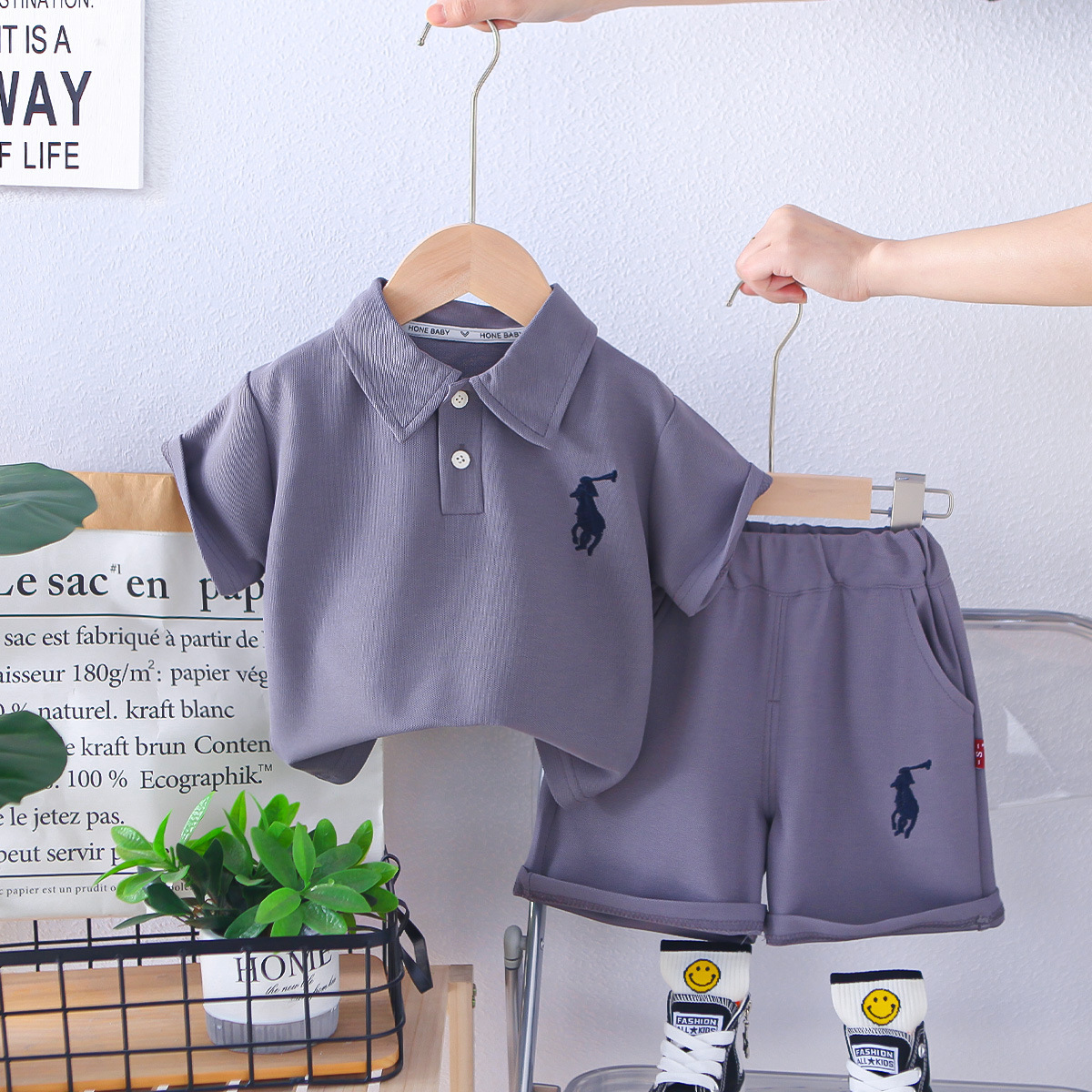 2025 새로운 소년 여름 세트 아기 외국 스타일 아기 여름 짧은 소매 반바지 머리카락 세대의 두 조각 세트