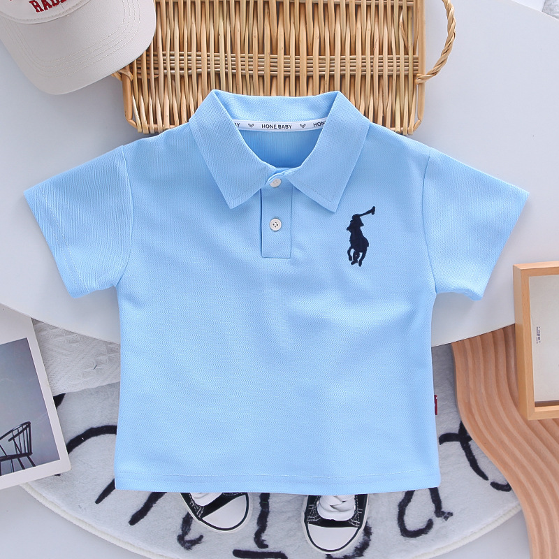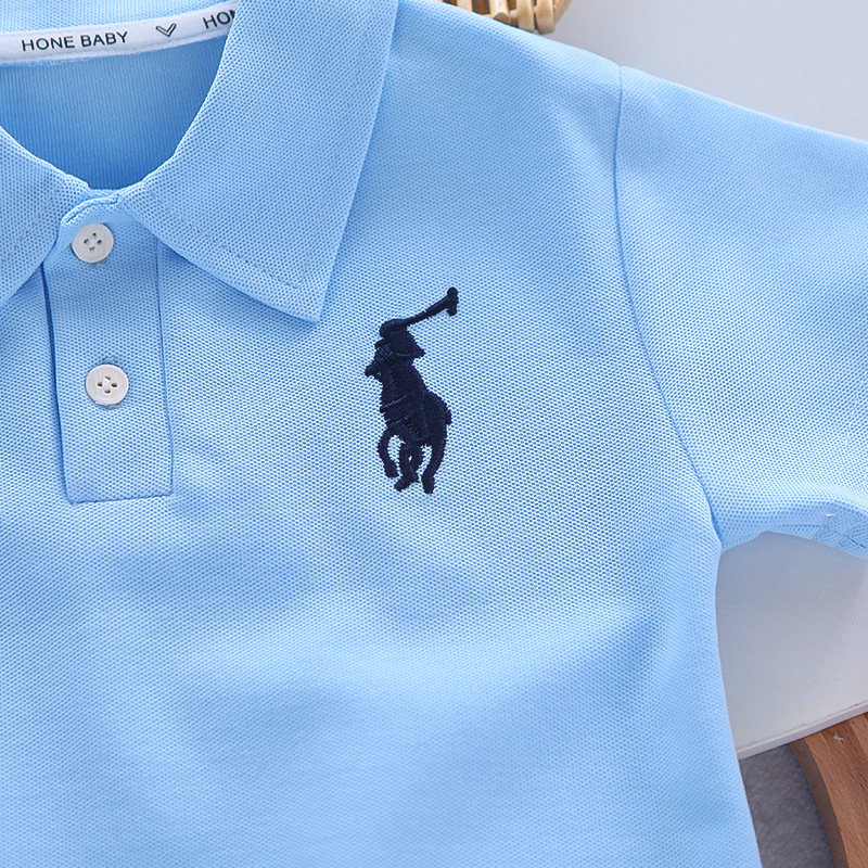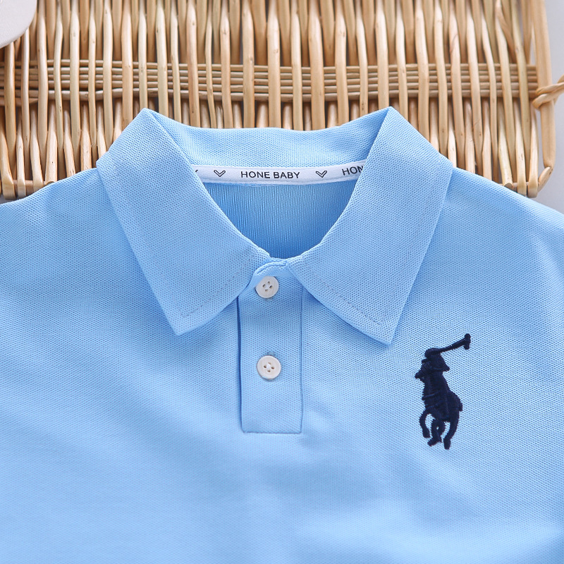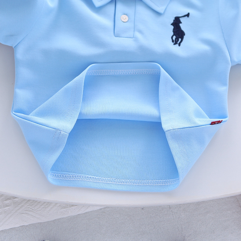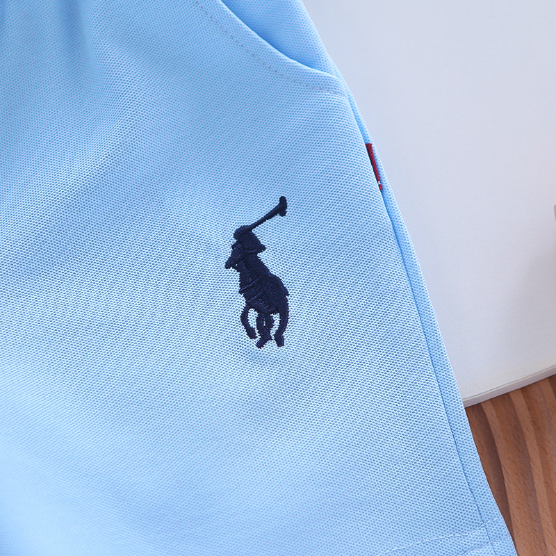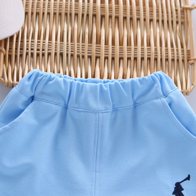 • 블루 X2505 자수 말 반팔 폴로 투피스 세트