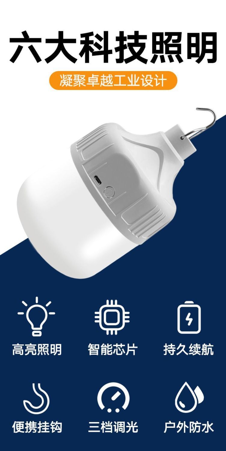 LED 전원 중단 홈 충전 전구 슈퍼 밝은 방수 야시장 usb 야외 잔디 빛 스톨 빛 무선 조명