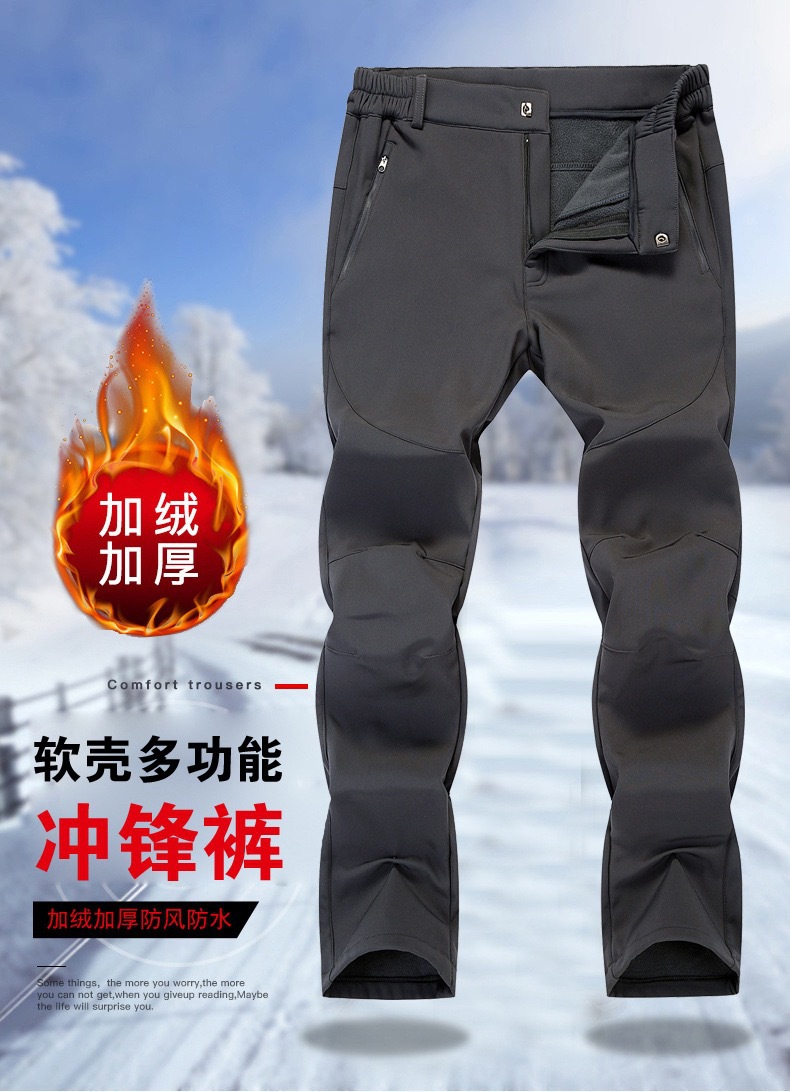야외 소프트 쉘 충전 바지 남자의 가을과 겨울 기모 두꺼운 따뜻한 캐주얼 바지 방풍 방수 기모 바지 여성스토어 가기