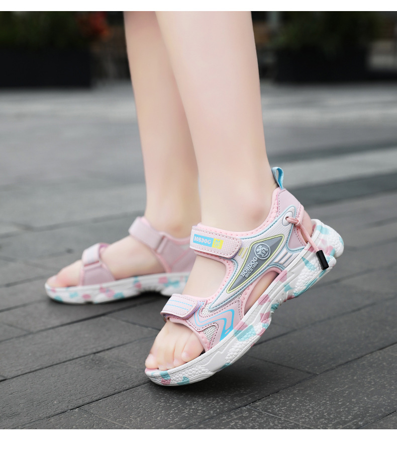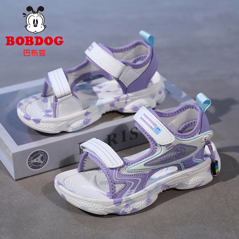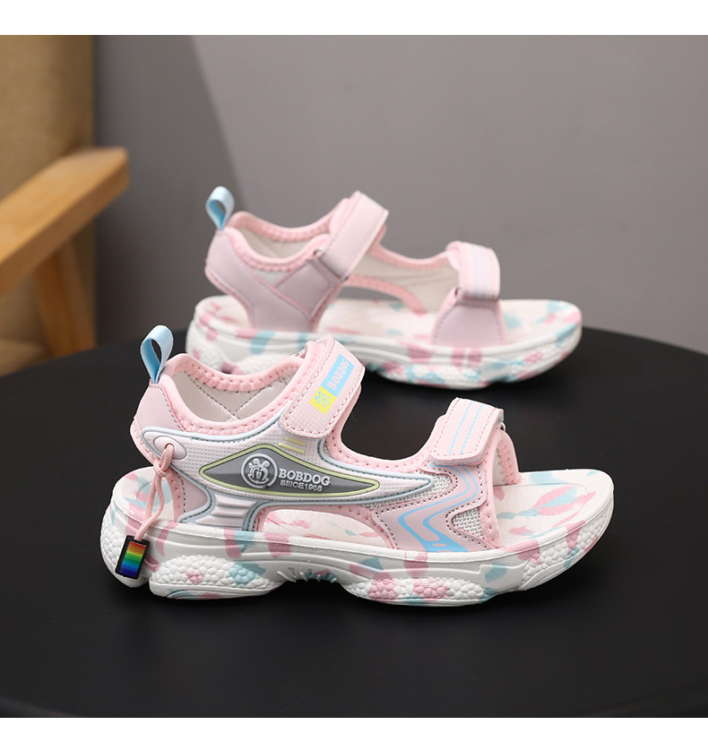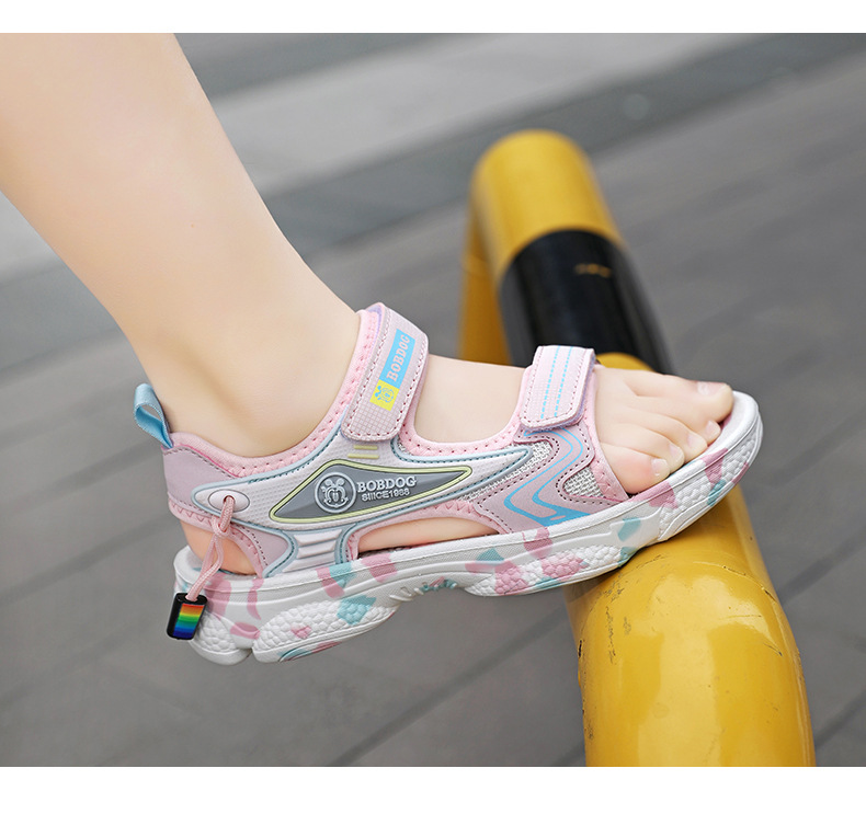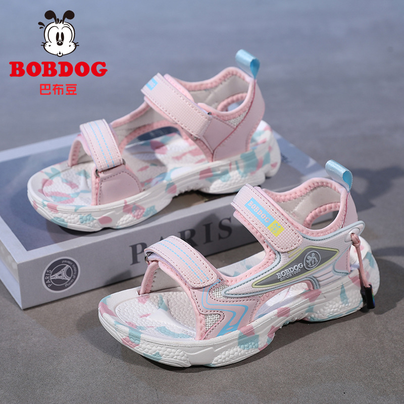 바부 빈 걸스 샌들 여름 2025 새로운 스타일 어린이 소녀 벨크로 오픈 발가락 소프트 단독 어린이 비치 신발스토어 가기