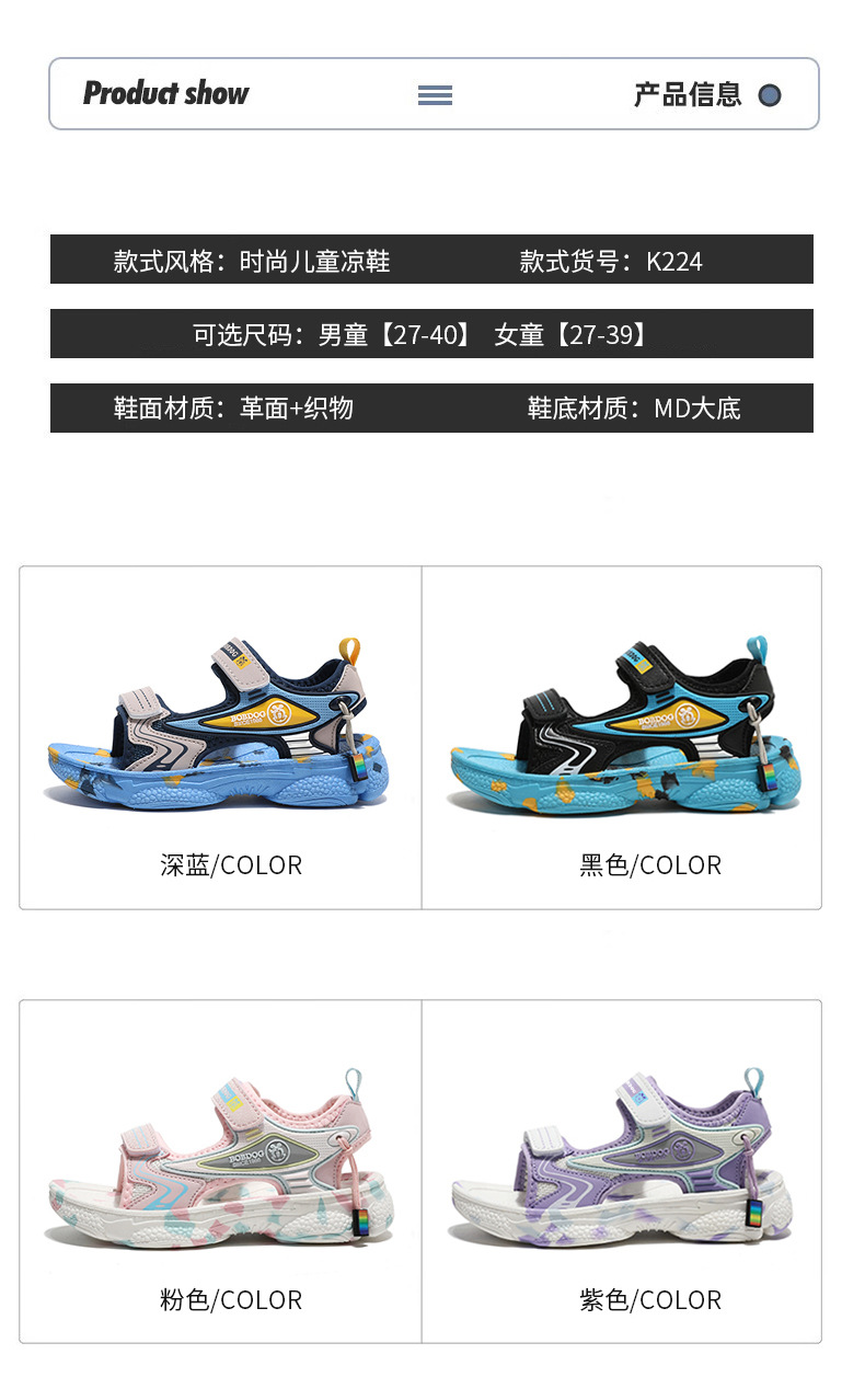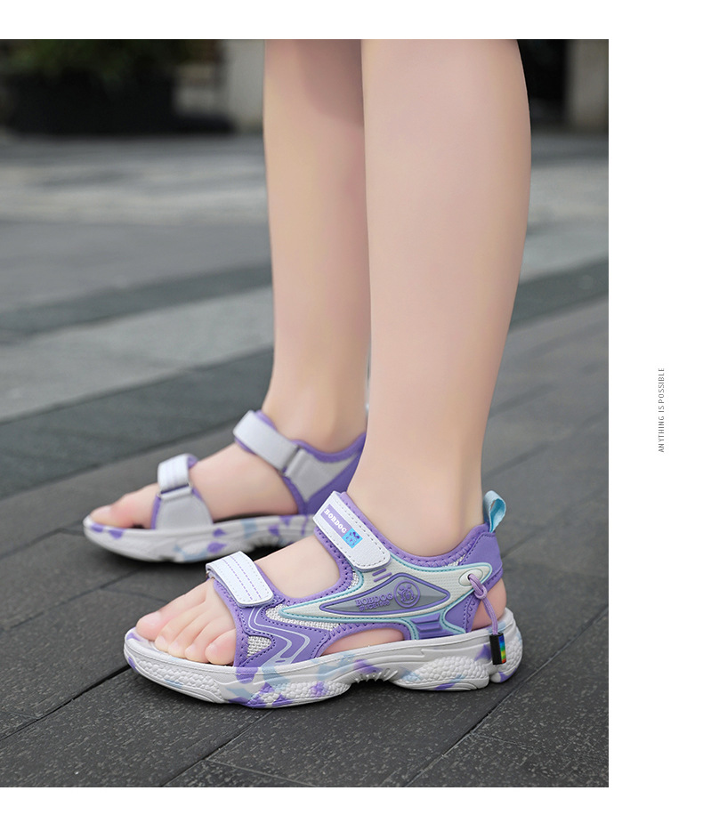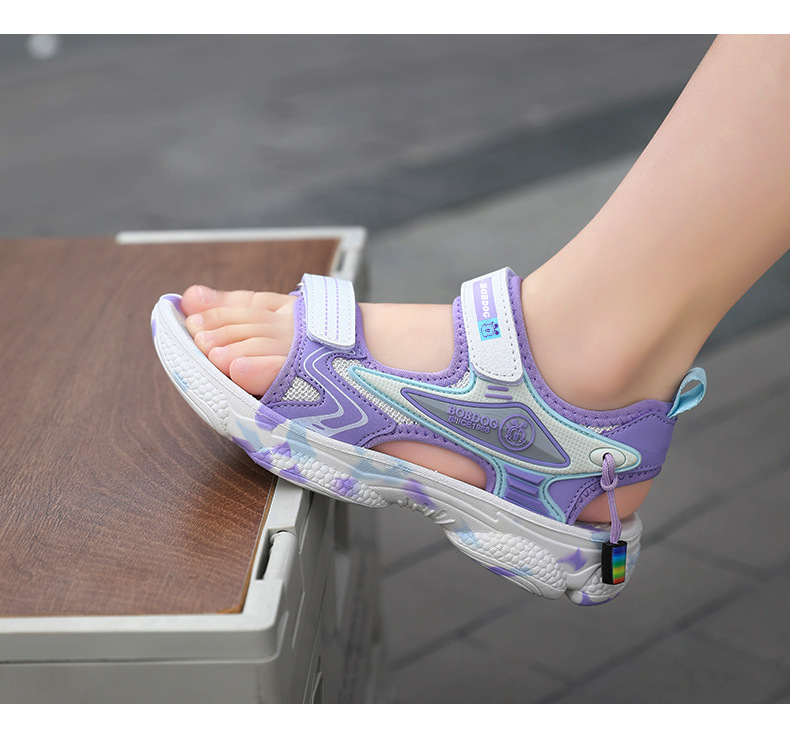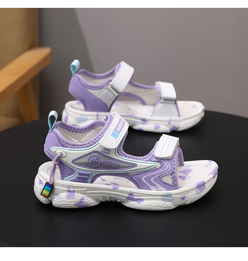 바부 빈 걸스 샌들 여름 2025 새로운 스타일 어린이 소녀 벨크로 오픈 발가락 소프트 단독 어린이 비치 신발스토어 가기